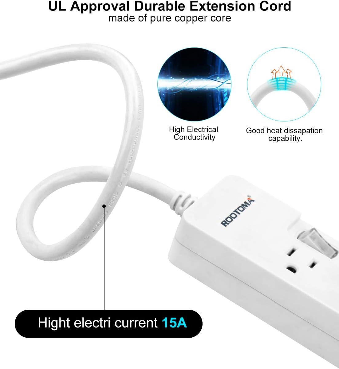 【UL Approval Extension Cord & Mountable】With 6ft long cable and mounting holes, you’re free to place this power outlet to home, office, dorm room etc. Compared with other common cables, this UL Approval 14AWG Heavy Duty Extension Cord made with Pure Copper and Fire-Resistance PC shell, thicker and better current carrying capacity ( 15A ).