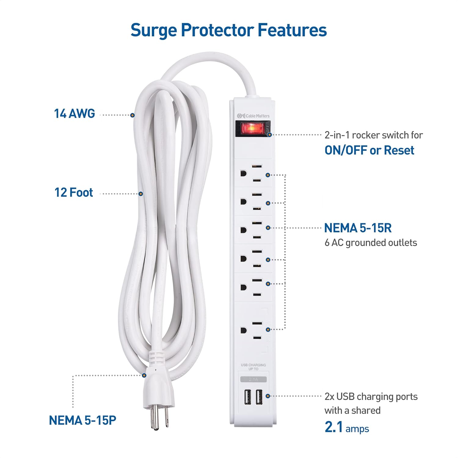 Cable Matters 2-Pack 6 Outlet Surge Protector Power Strip with USB Charging PortsCable Matters 2-Pack 6 Outlet Surge Protector Power Strip with USB Charging Ports