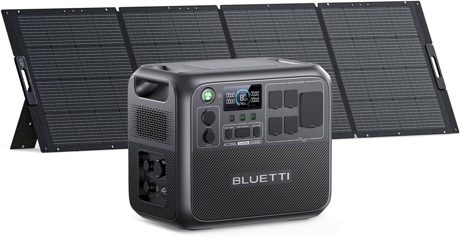 [Solar Power Your Life] – This solar generator kit includes 1 AC200L and 1 350 Watt foldable solar panel, enabling you to replenish this 2048Wh solar generator from 0-80% in 4.6-9.2 hrs.