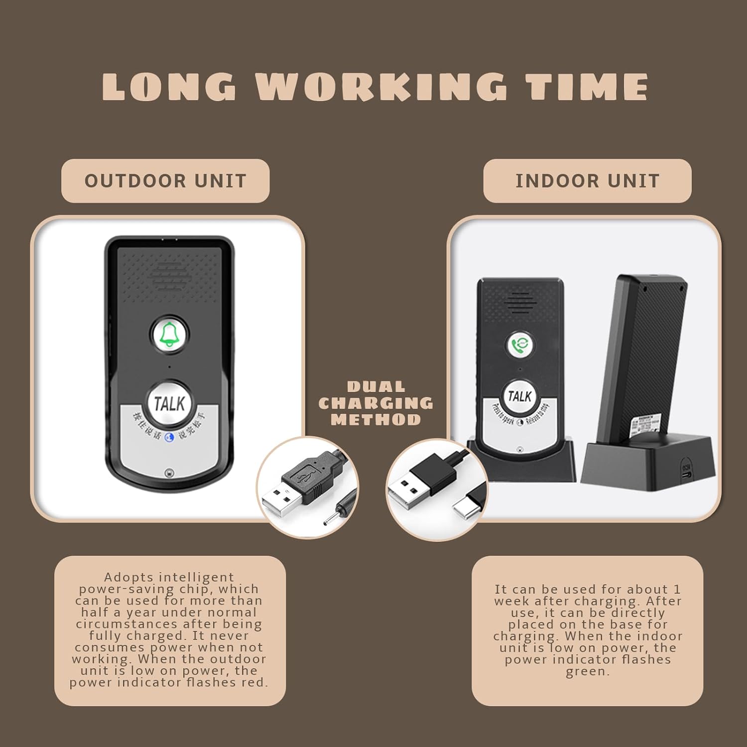 LONG BATTERY LIFE: The 2 way voice intercom has built in large capacity battery, adopts intelligent power saving chip, with long battery life.