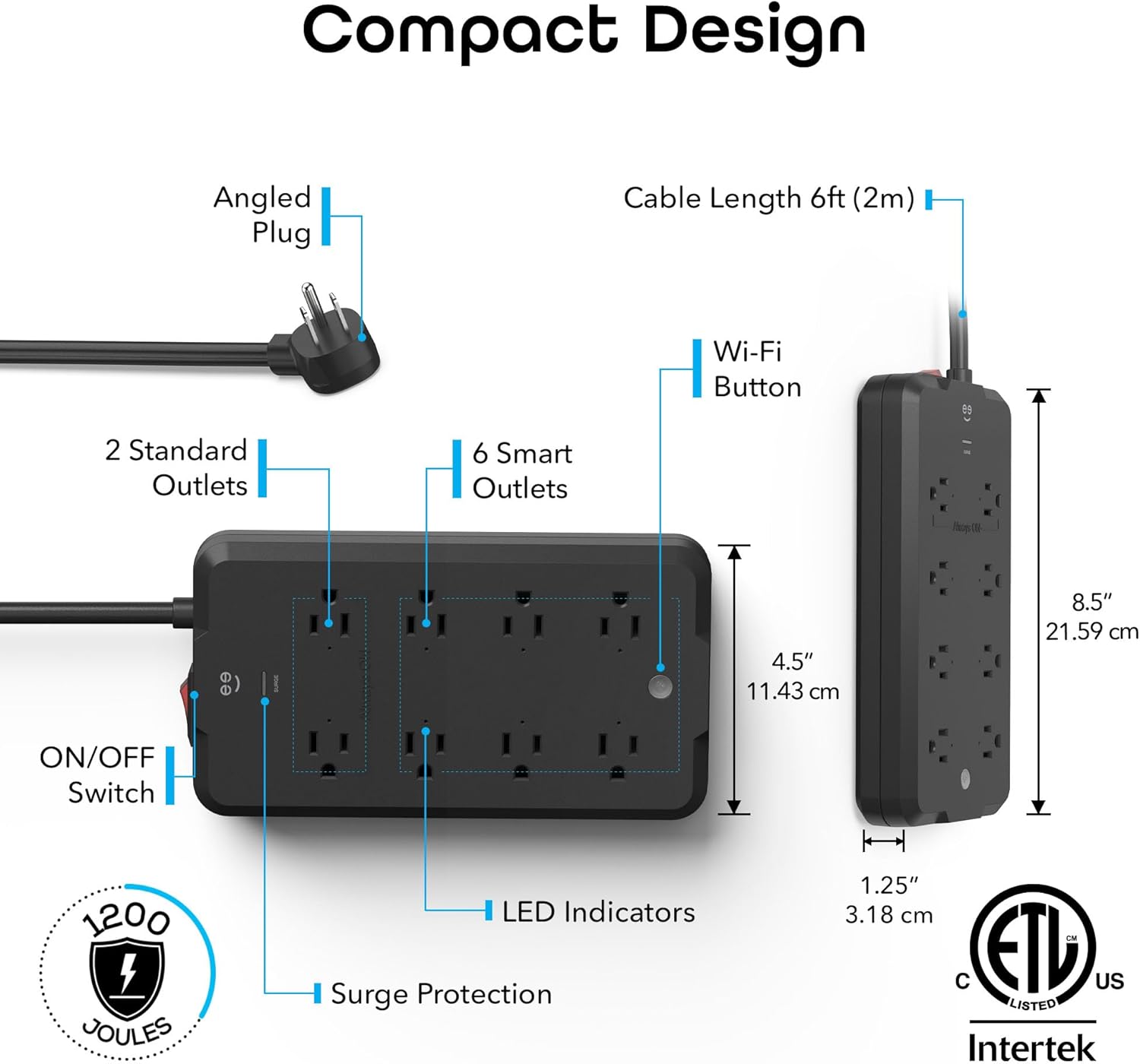 SURGE PROTECTION: Featuring built-in surge protection with 1200 Joules, this smart surge protector ensures the safety of your devices and home, even when all 8 outlets are in use. Peace of mind and protection against unexpected power surges are guaranteed.