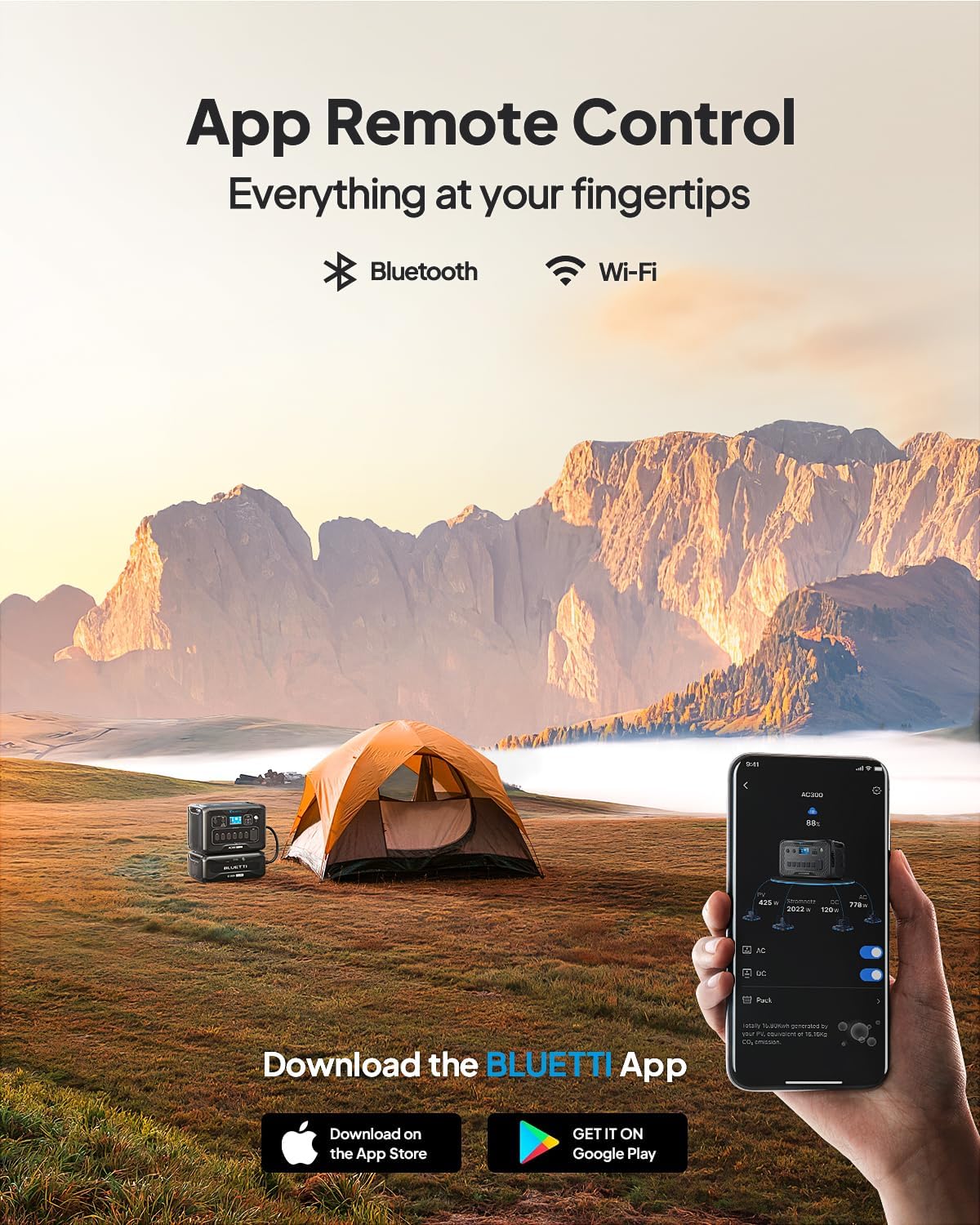 [Go Green, Go Solar] – This kit includes AC300+B300K and a 350W foldable solar panel. Now you can charge the battery with endless and sustainable solar power wherever the sun shines.