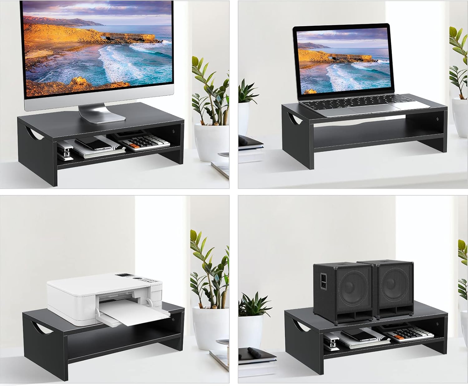 Multi-use: 2-Tier monitor riser is suitable for most devices with a 16.5 x 9 inches platform, including PC monitor/screens, laptops, printers, fax machines, speaker, telephone, TV monitor, etc.. Perfect for home study room, office, living room, classroom, meeting room.