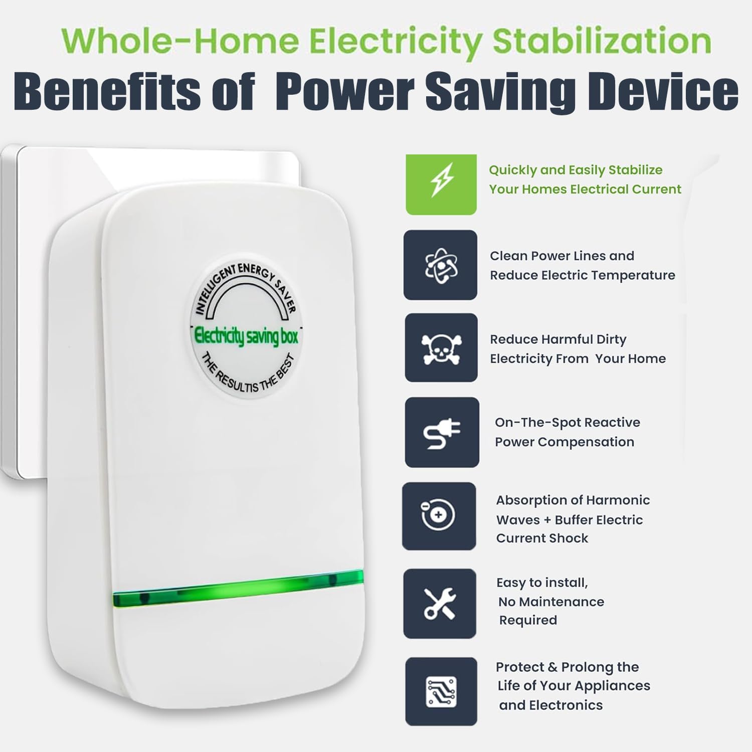 【Dependable Performance】Energy Saver maximizes safety and reliability by using power-saving technology to ensure continuous and safe power savings. The energy savers plug in absorbs harmful electrical surges, preventing damage to your home appliances. It operates efficiently without emitting heat, making it safe to use continuously