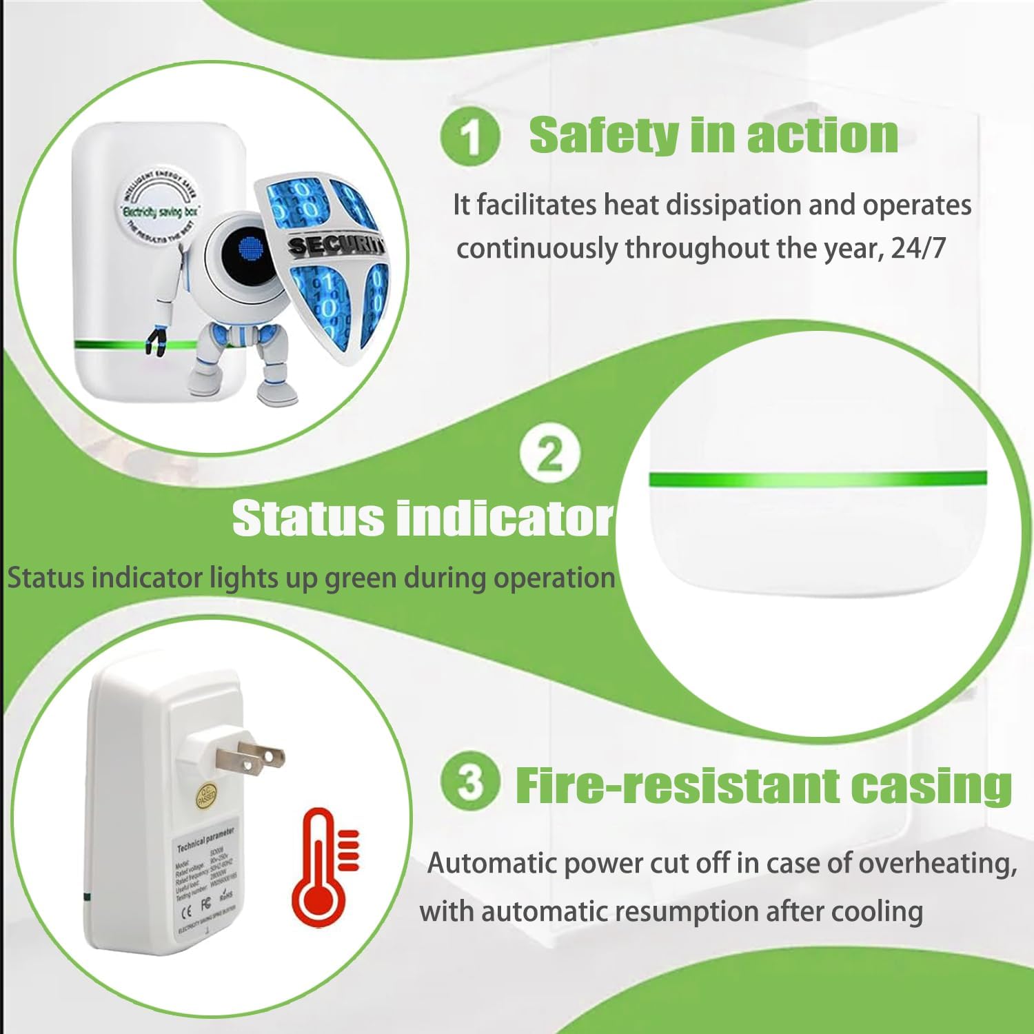 【Easy to use】Simply plug the Power Saver into any outlet to begin saving electricity without the need for complex installations. The green shows it’s functioning, and it starts optimizing energy use across your home or office. Easy to use and effective!