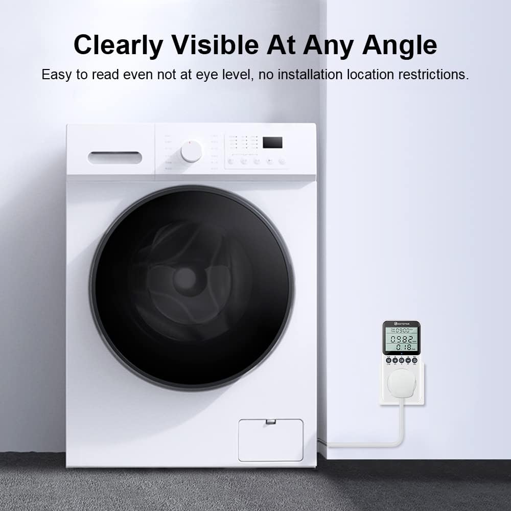 【Monitor home appliances】Insert the watt meter between the appliance and the power outlet. This energy meter will measure the power consumption of the appliance and automatically calculate the electricity bill, only being calculated if the appliance is running at a power greater than 2 watts. Suitable for computers, games consoles, printers, TVs, refrigerators, washing machines, dryers, routers, etc.