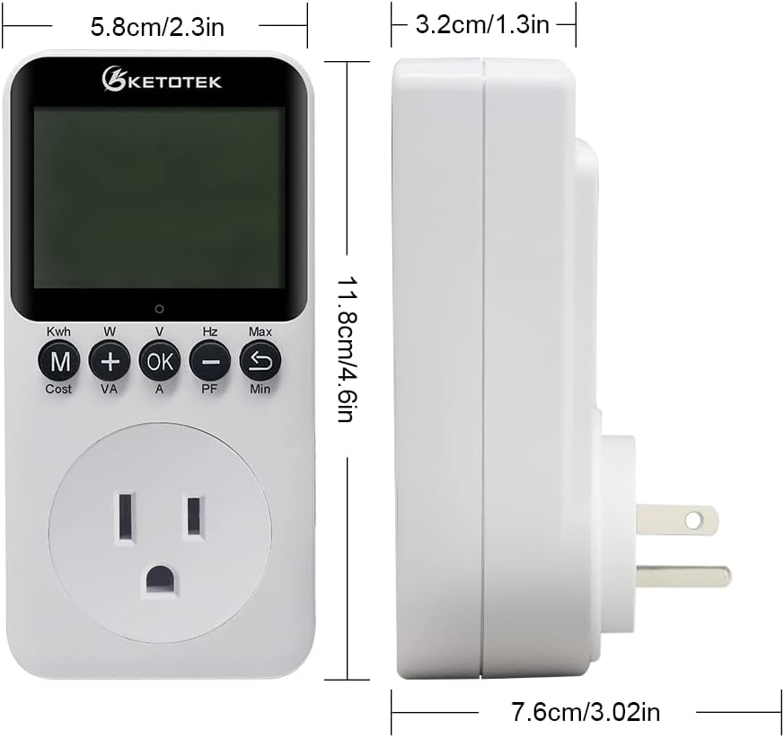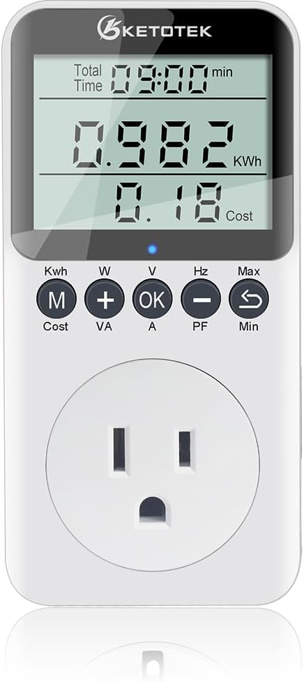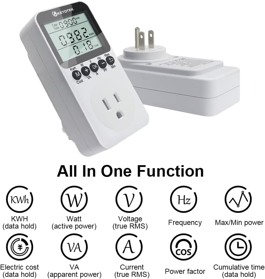 KETOTEK watt meter can help you check the quality of power by monitoring voltage, amp, frequency and power factor. Helping you find power-wasting appliances so you are able to decide whether it is worth keeping.