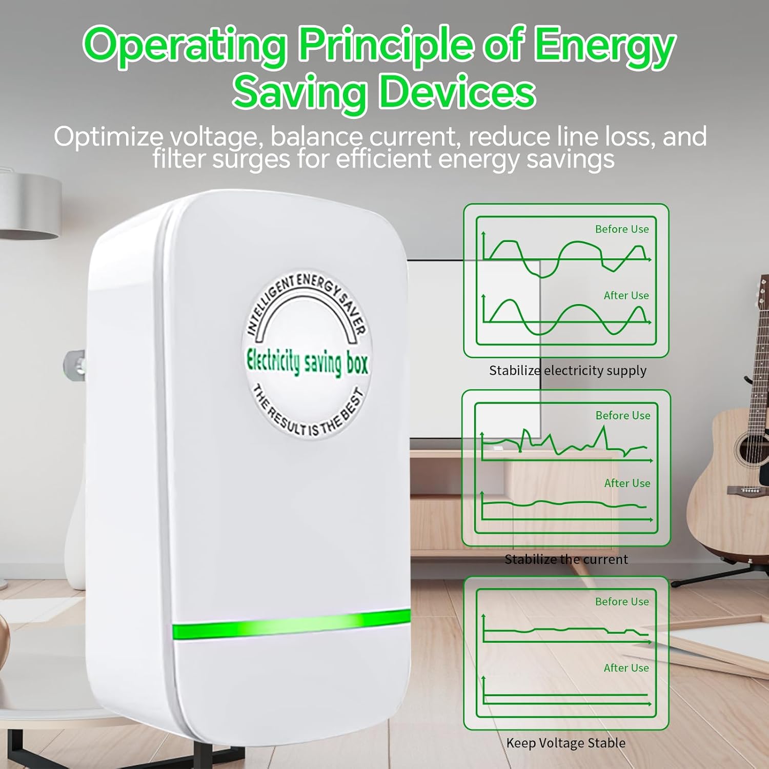 Easy Installation: The stop watt energy saving device features a plug-and-play design, making it extremely convenient to use. Simply plug it into any outlet, and when the green indicator light turns on, energy savers start working immediately with no complicated installation or setup required. Its stylish and intelligent design seamlessly integrates into any home or office environment.
