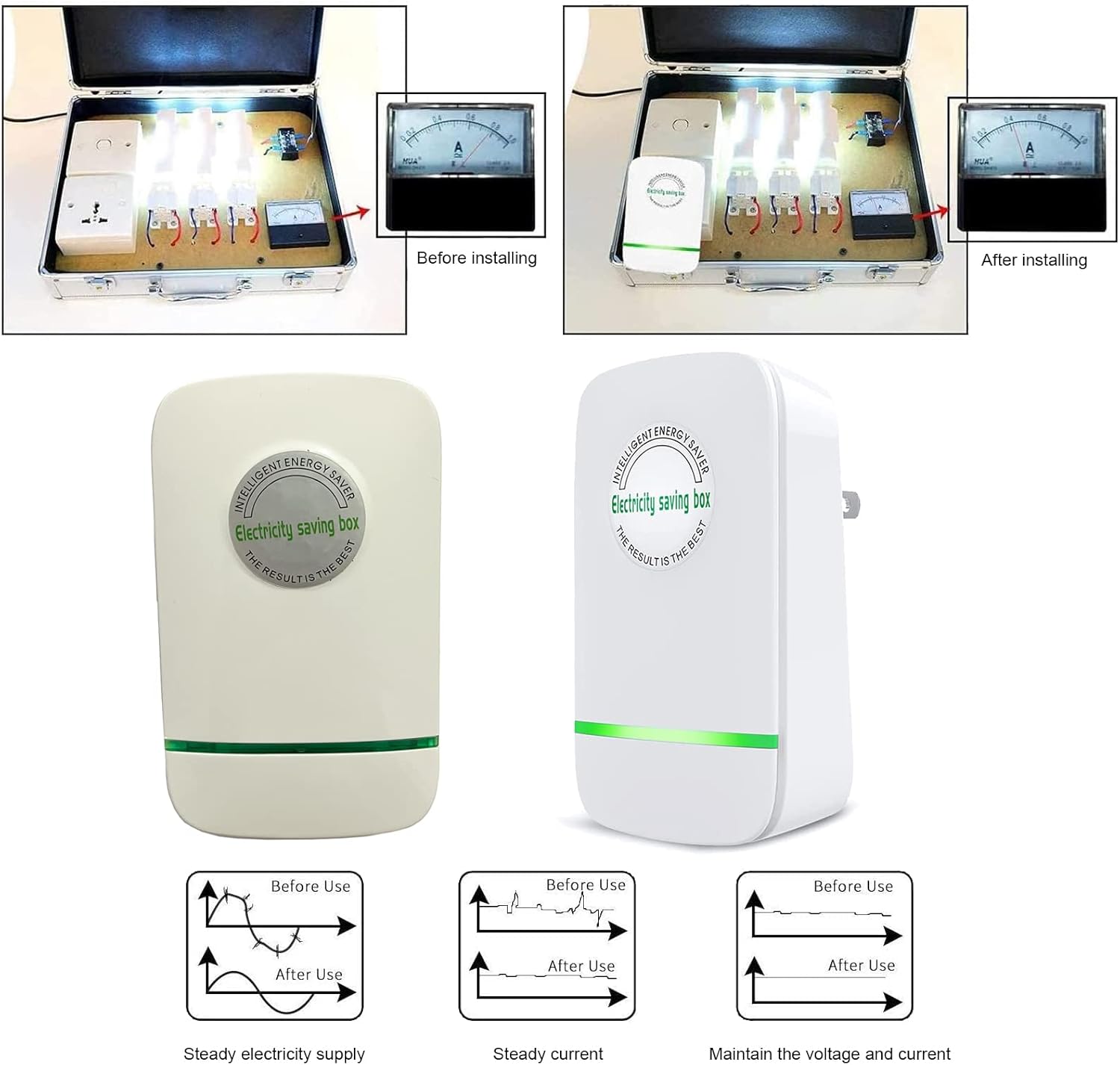【Electricity Saver Applicable】:The electricity saver device is suitable for household, office, restaurant, library or small factory and so on. The energy saving device protecting electrical appliances by stabilizing the current and keeping the voltage stable,whose effect is long term.