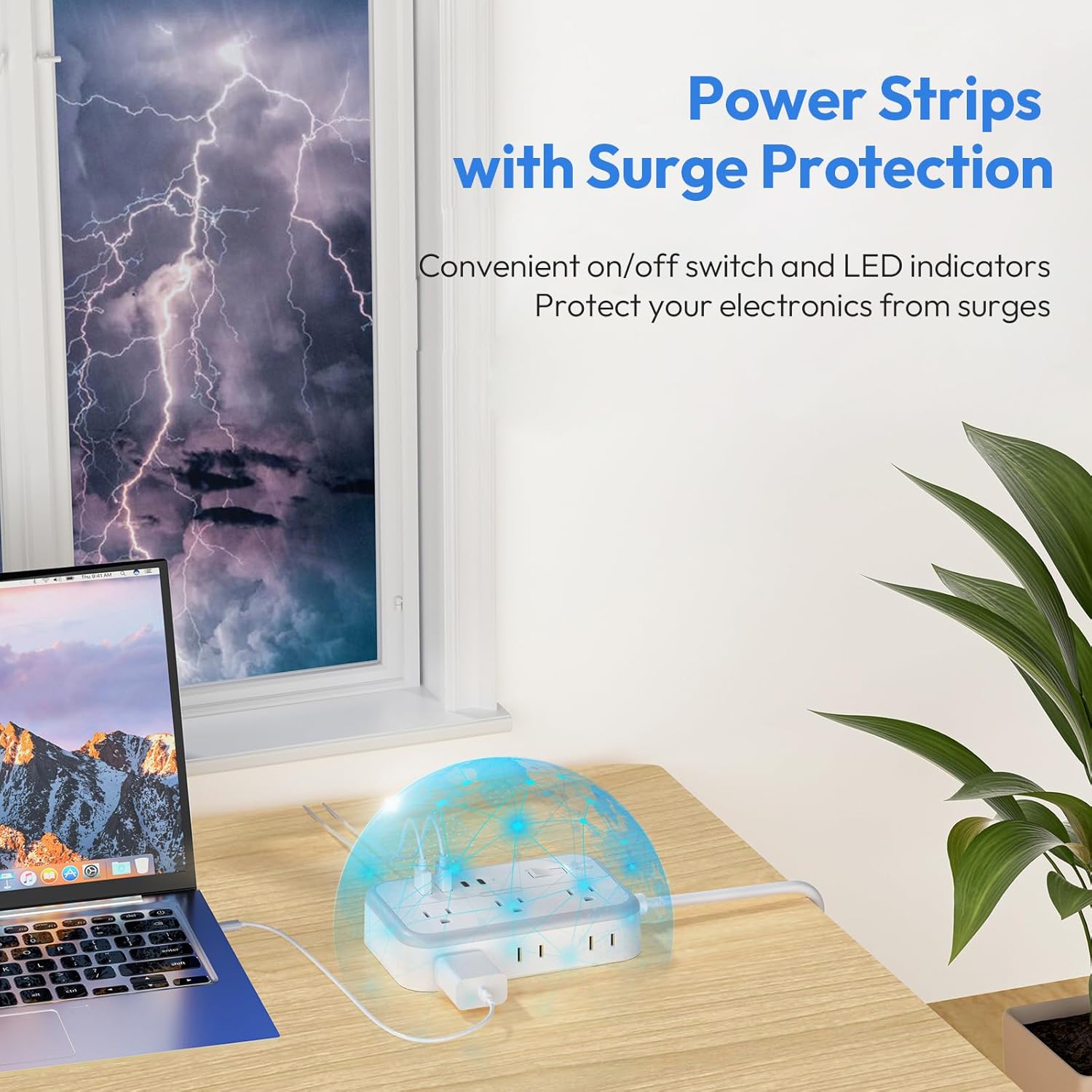【Portable and Multifunctional】With multiple ports, installable, surge protection and long Cord functions, it is the power essential of go-to choice for home essentials, dorm room essentials, office supplies, college supplies, and apartment must haves.