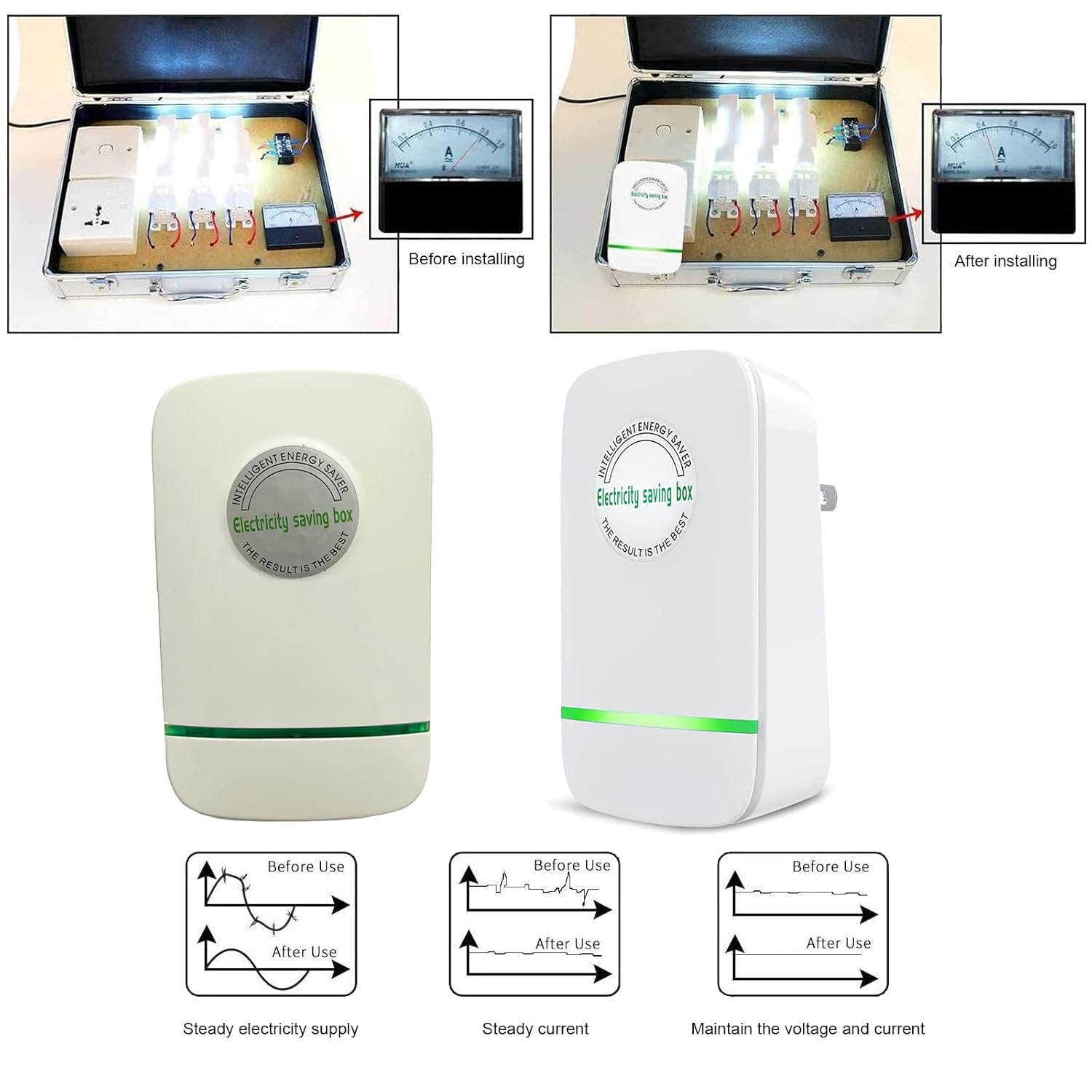 ☘CONVENIENT☘: You just plug the energy savers plug in a power outlet, and then keep the device connected and start working. The electricity saving box convenient energy-saving solution for any appliances. The power factor saver effect of the smart electricity regulator will be displayed on your energy bill.