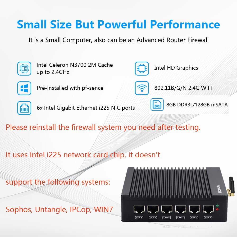 【Reinstall the system】Because it has been installed a system by default, if you need to use it or other firewall system as a firewall/soft router, you need to reinstall the system yourself. It’s an ideal device for experienced users/hobbyists but may be a little tricky for beginners