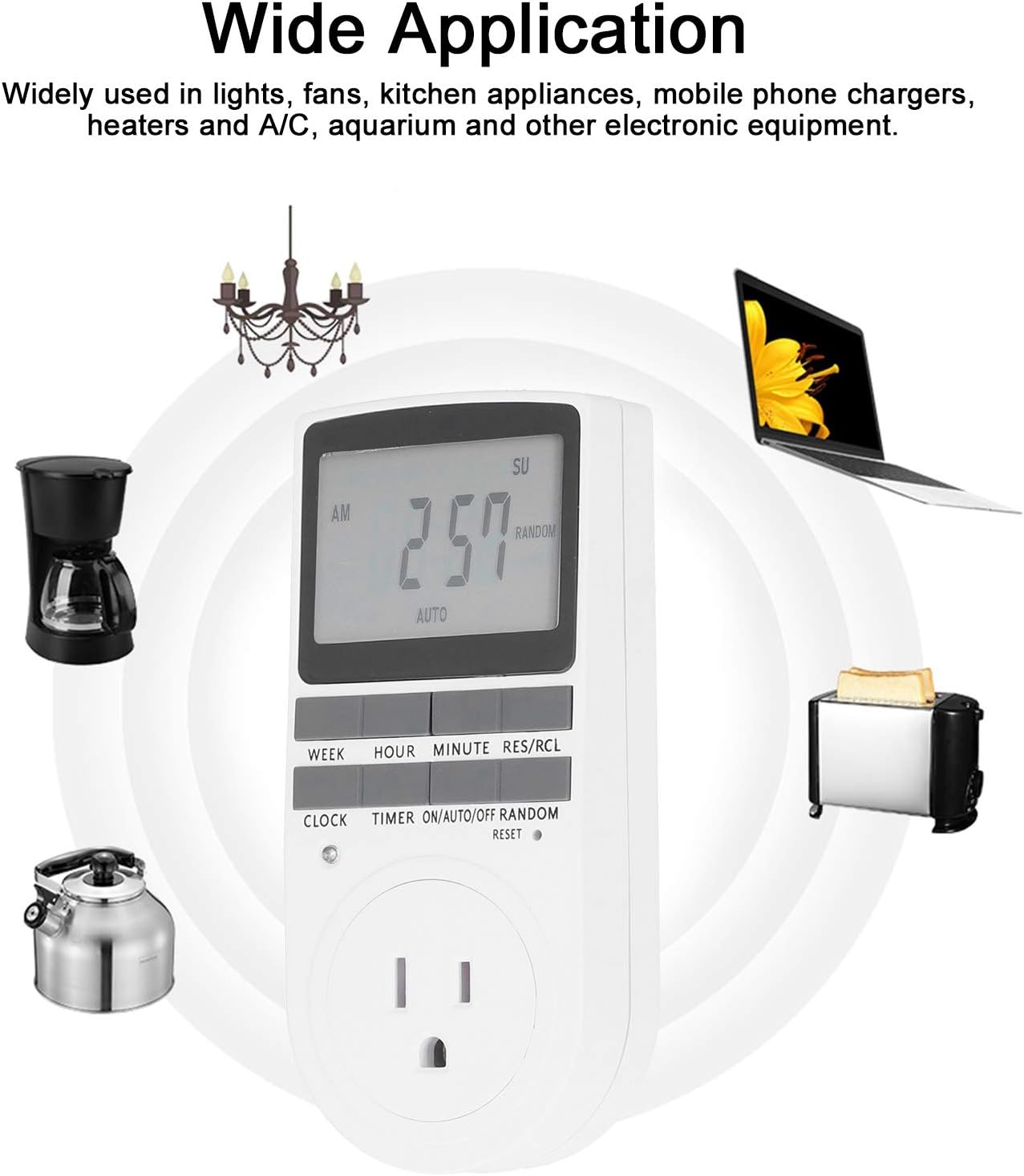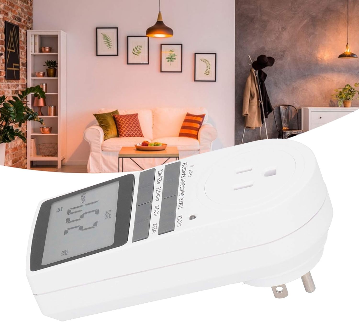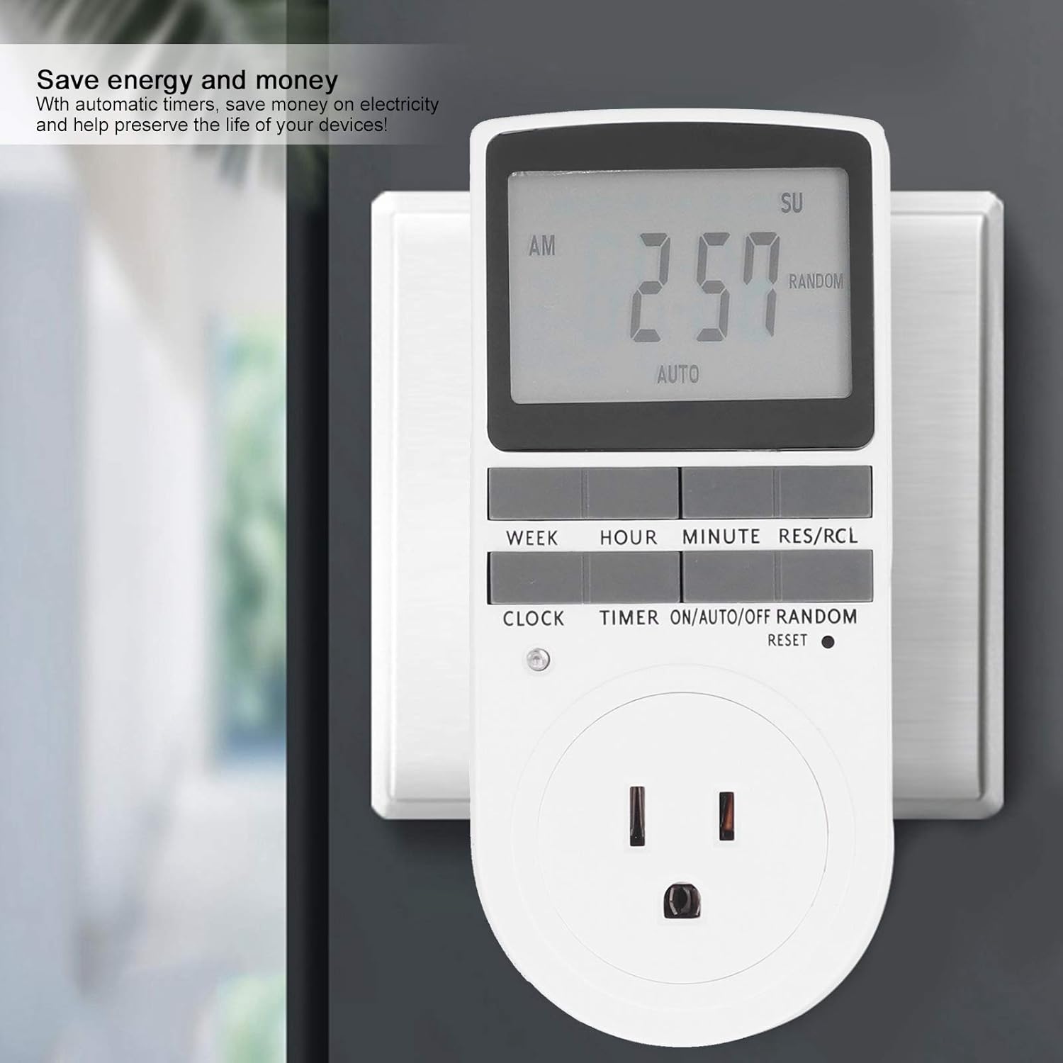 Automatic timing: This Plug-in Digital Timer Outlet has an automatic timer to avoid overcharging, thereby reducing power consumption in standby mode, saving power consumption, and increasing the service life of electrical appliances.