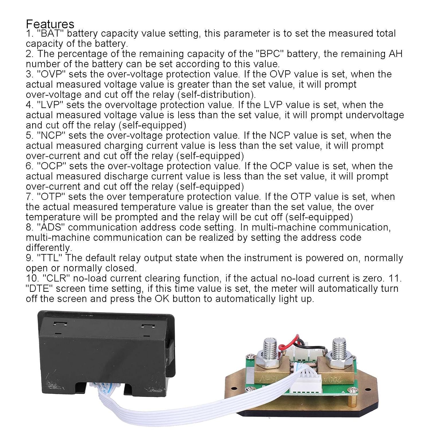 2. BPC battery remaining capacity percentage, you can set the remaining battery AH number according to this value.