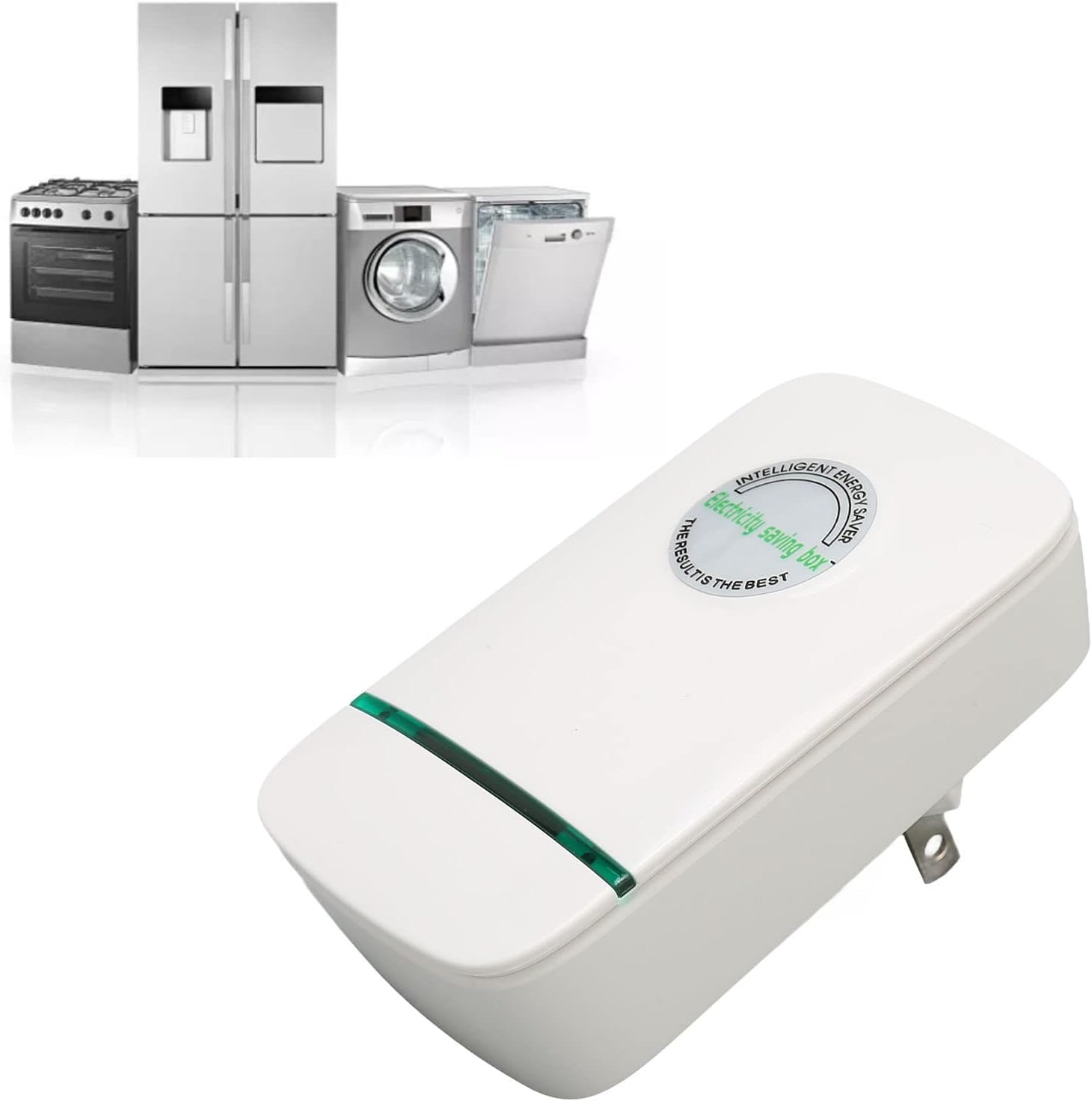 Easy to Use: Power saver, Simply plug the electricity saving box into an electrical outlet, the green indicator light will come on and then start working by connecting the device to it; it will reduce your power consumption and save electricity effectively, up to 20%‑35% for heavy loads.