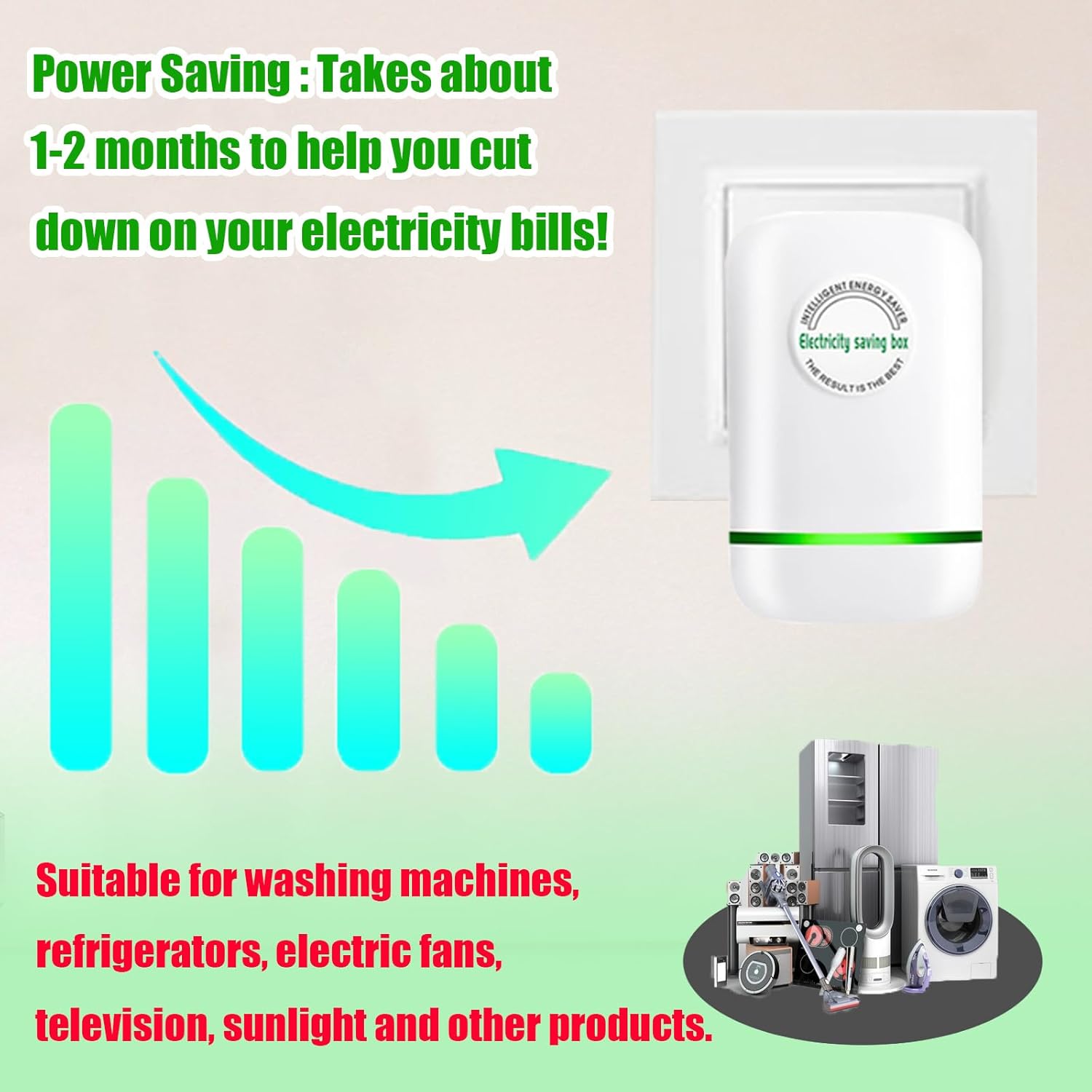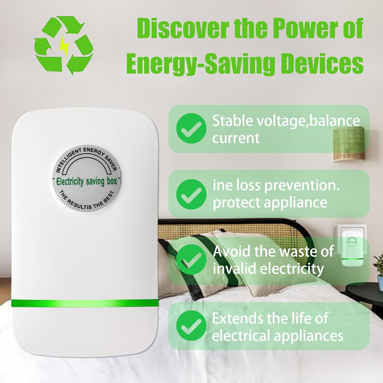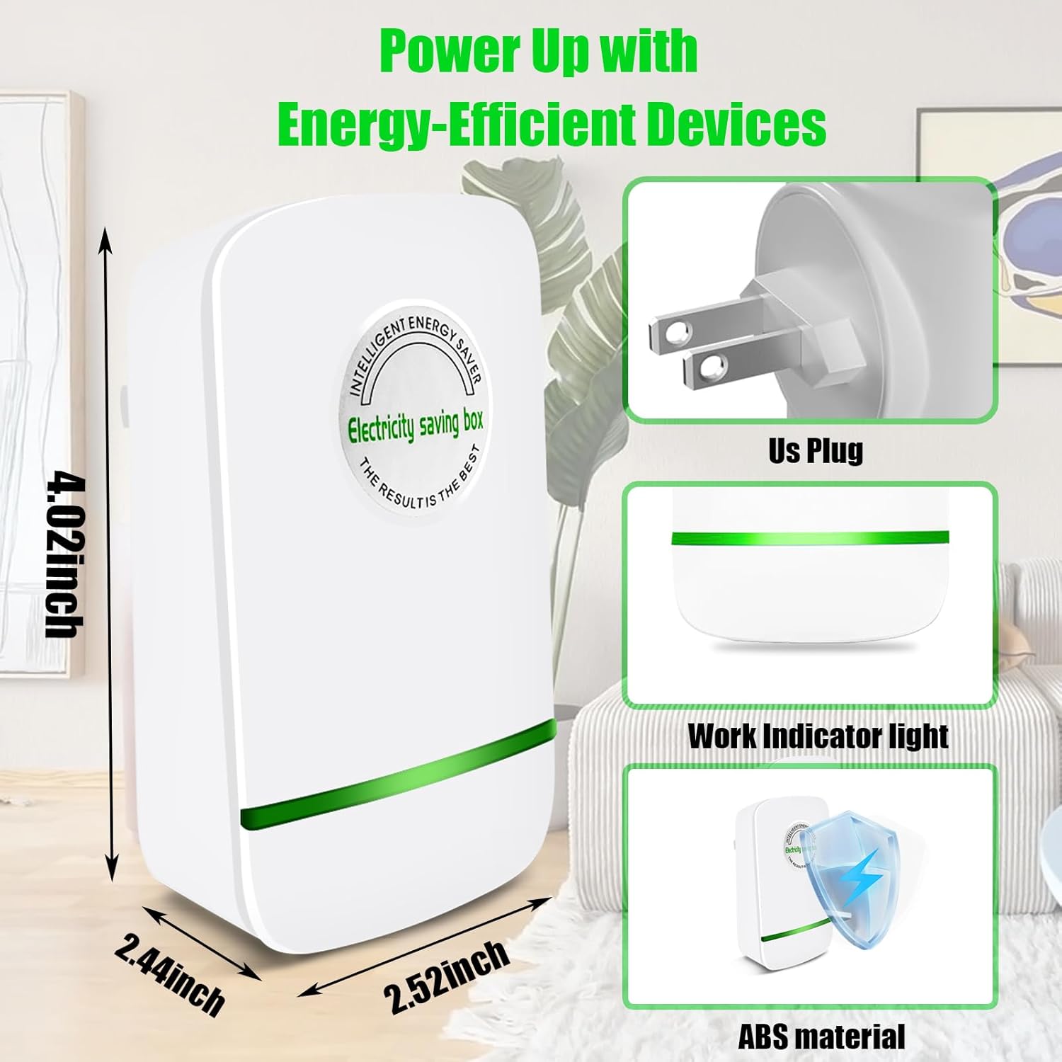 Streamlined Energy Efficiency : To use energy-saving box, simply plug it into a power outlet and look for the green light to verify that it is active. With high-power appliances, these energy savers can reduce electricity usage by 20% to 35%, resulting in real savings.