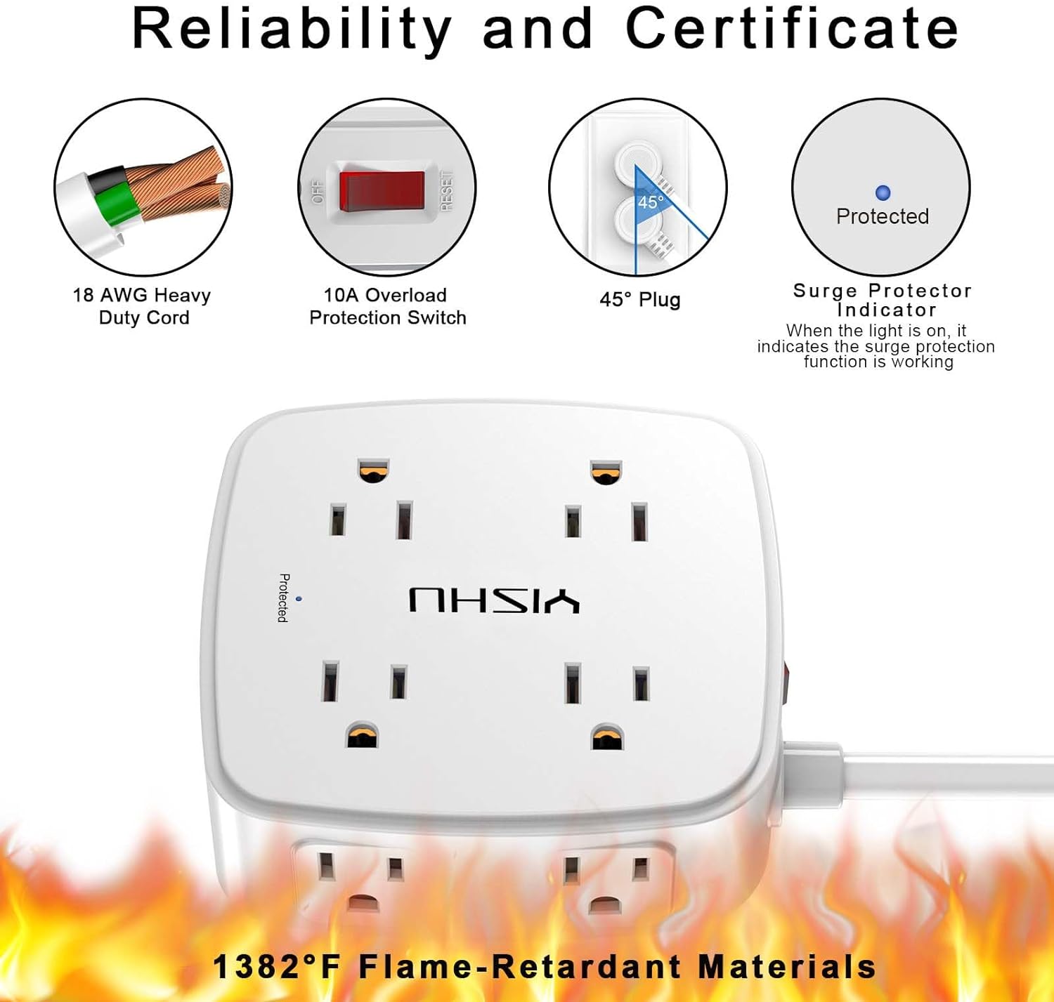 【Multi Safety Protection】- RoHS, FCC and ETL Certificates. This power strip has overload protection, short-circuit protection, over current protection, over-voltage protection and overheating protection. The surge protector with overload protection protects your electrical appliances from lighting, surges or spikes. The minimum energy-absorbing capacity of 600 Joules. It will automatically cut power to protect connected devices when voltage surge is overwhelming.