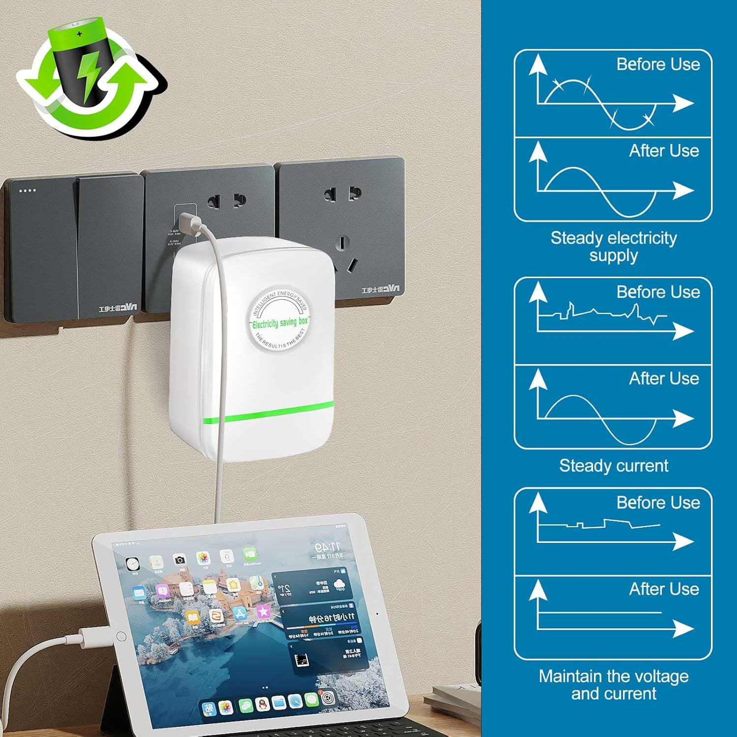 Compatibility: energy saving device is compatible with a wide range of appliances, including air conditioners, refrigerators, washing machines, and more. Whether in a household or office setting, it effectively reduces power consumption, contributing to significant energy savings.