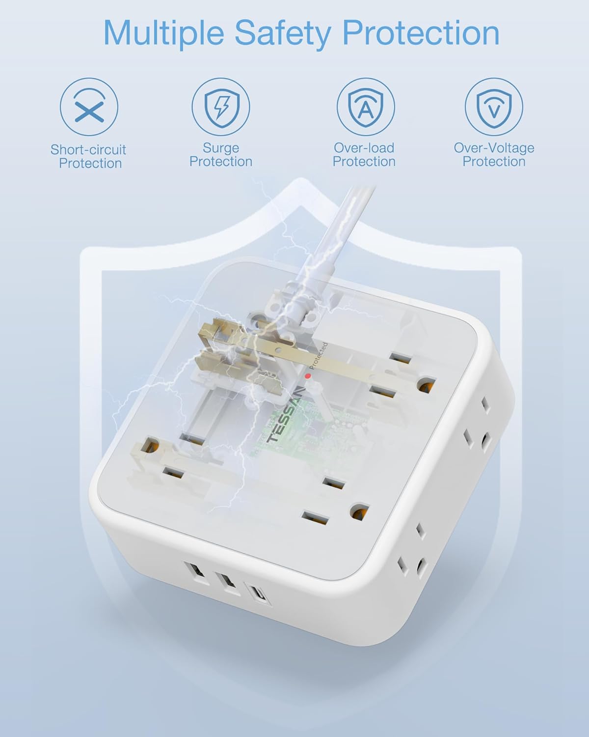 Surge protection with a 900 joule large energy rating, protect your expensive appliances like computers, TV at home