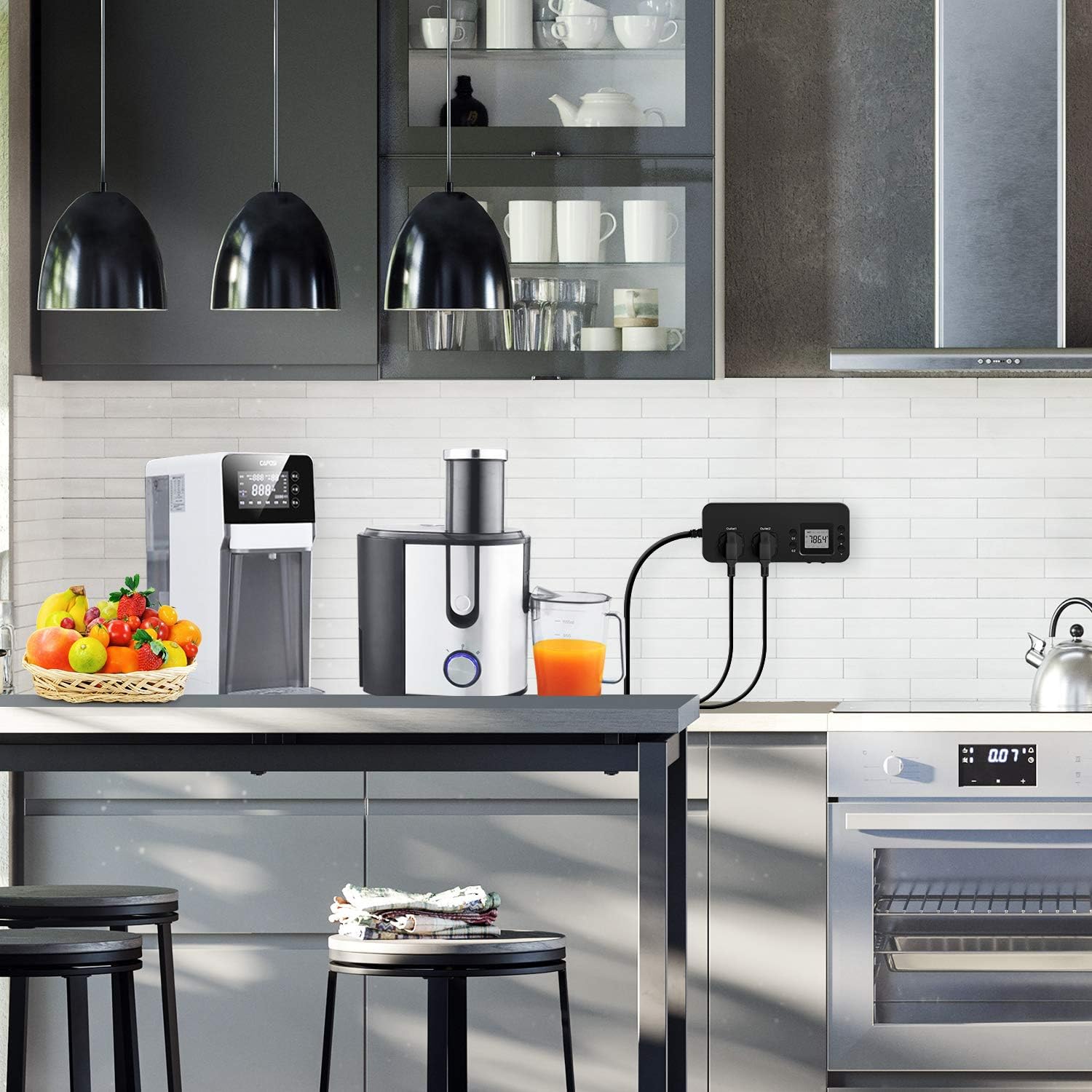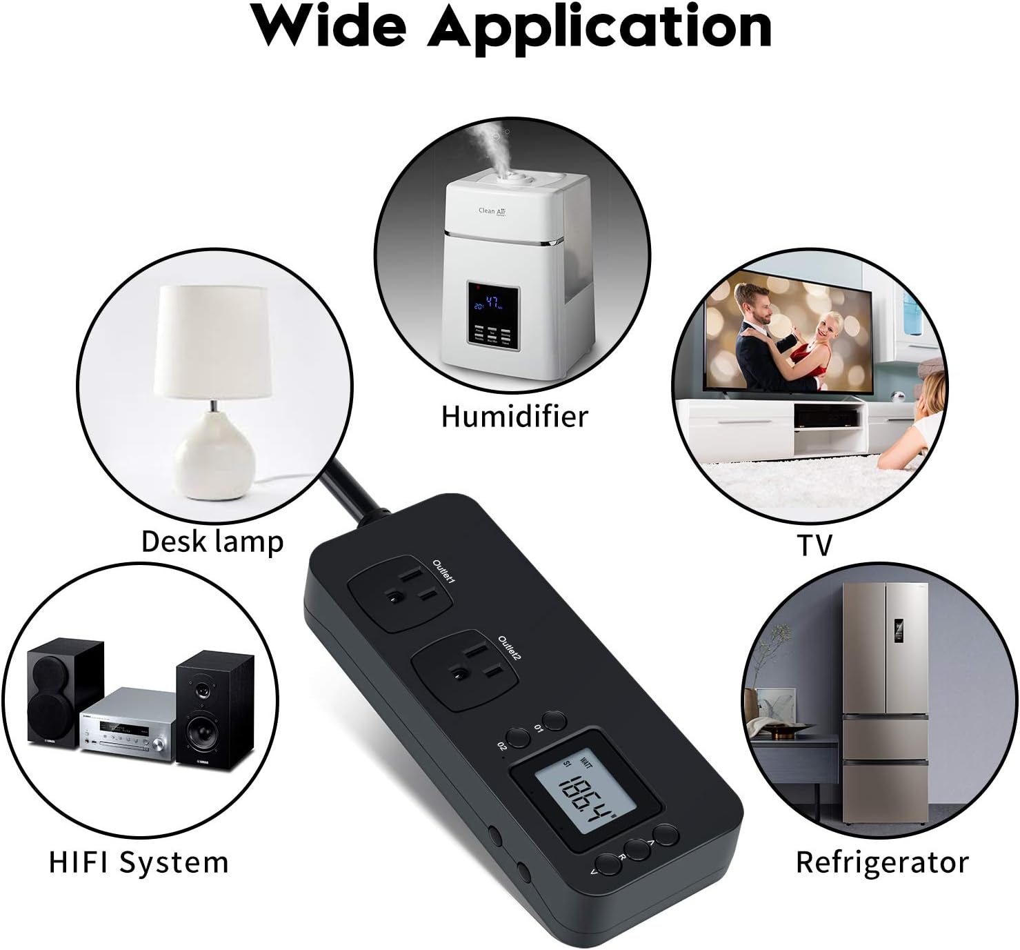 NEW DESIGN: Our new electricity usage monitor with 2 outlets design can allow you monitor the power consumption of two electronic devices at the same time. Monitor each machine independently, without affecting each other