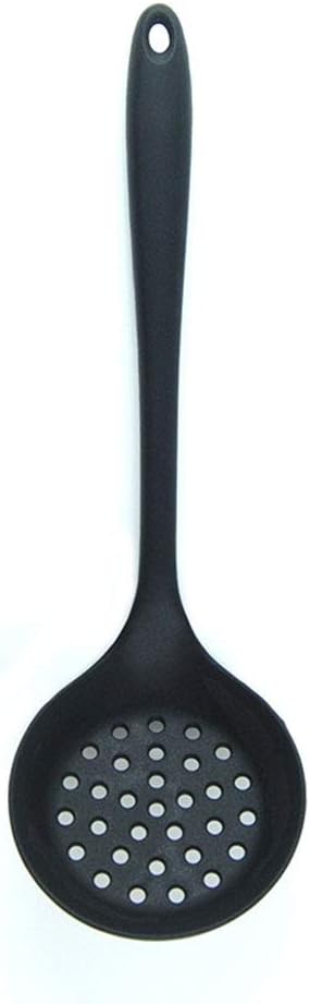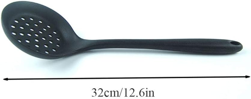 Flexible silicone Slotted Skimmer Spatula Long Handle Ladle Spoon Cooking Gadget for Home Use (Black)