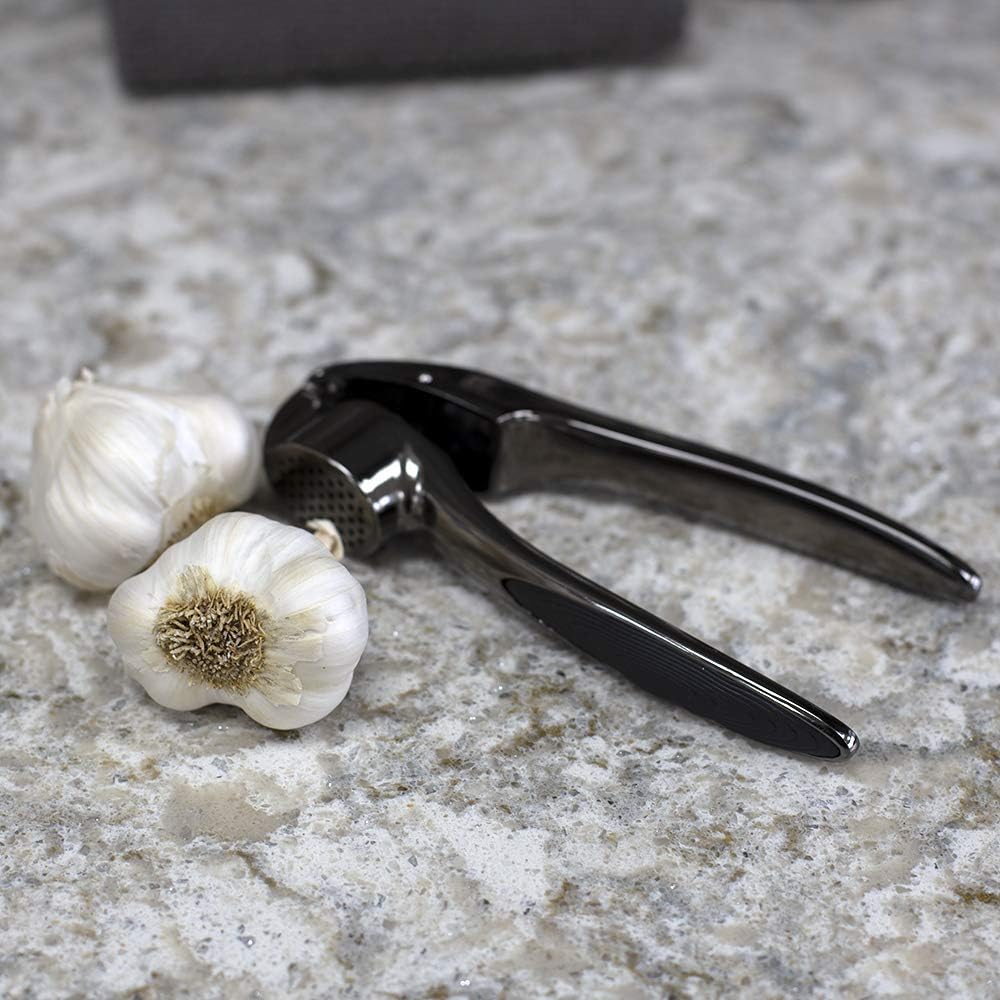 Home Basics Nova Collection Zinc Kitchen Gadgets Tool with Smooth Grip, Easy to Use, Store and Clean, Black Onyx, 6.22″ L x 1.57″ W, Garlic Press Crush