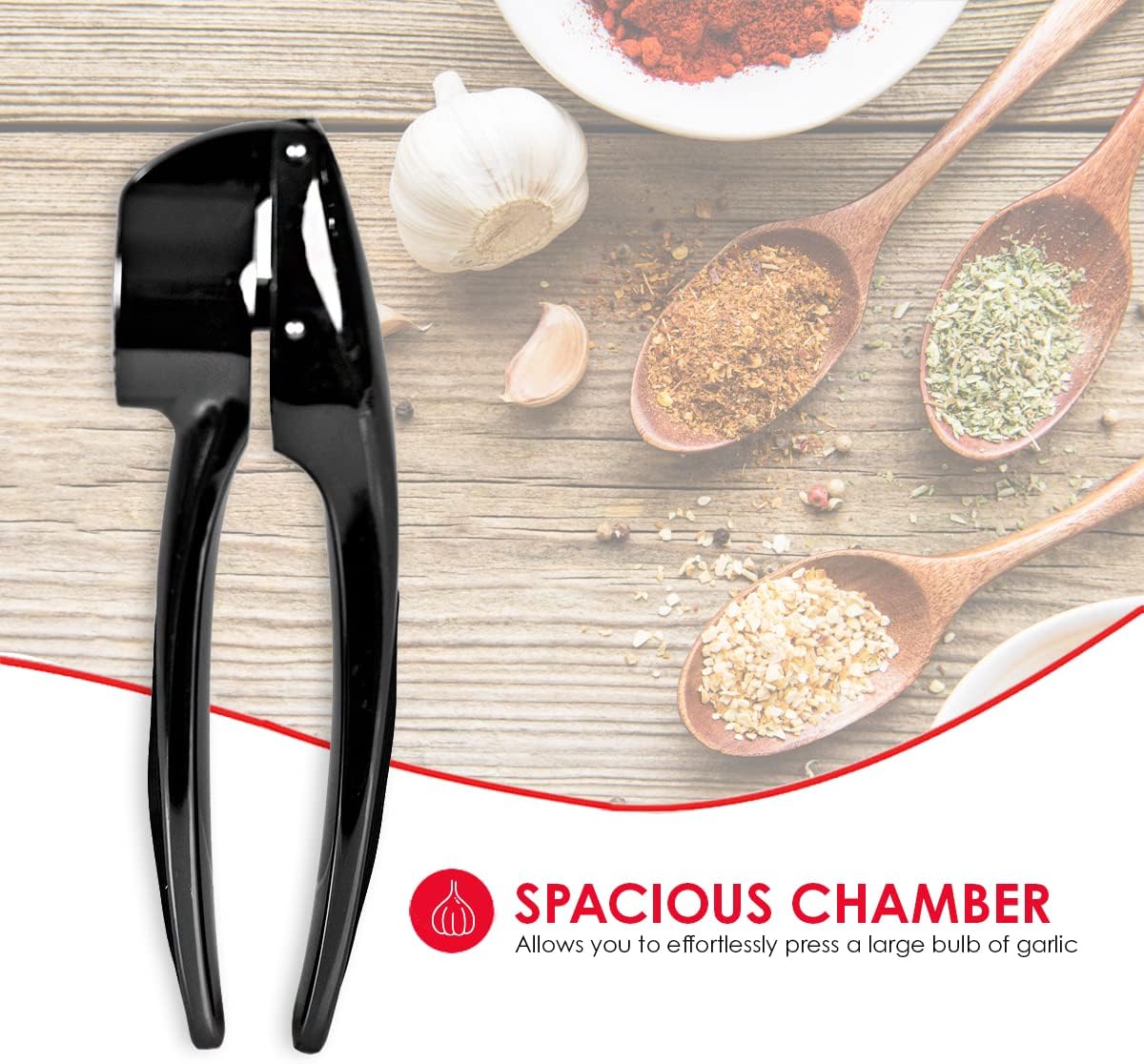 Spacious chamber allows you to effortlessly press a large bulb of garlic, while the evenly patterned perforations extracts more uniform pieces.