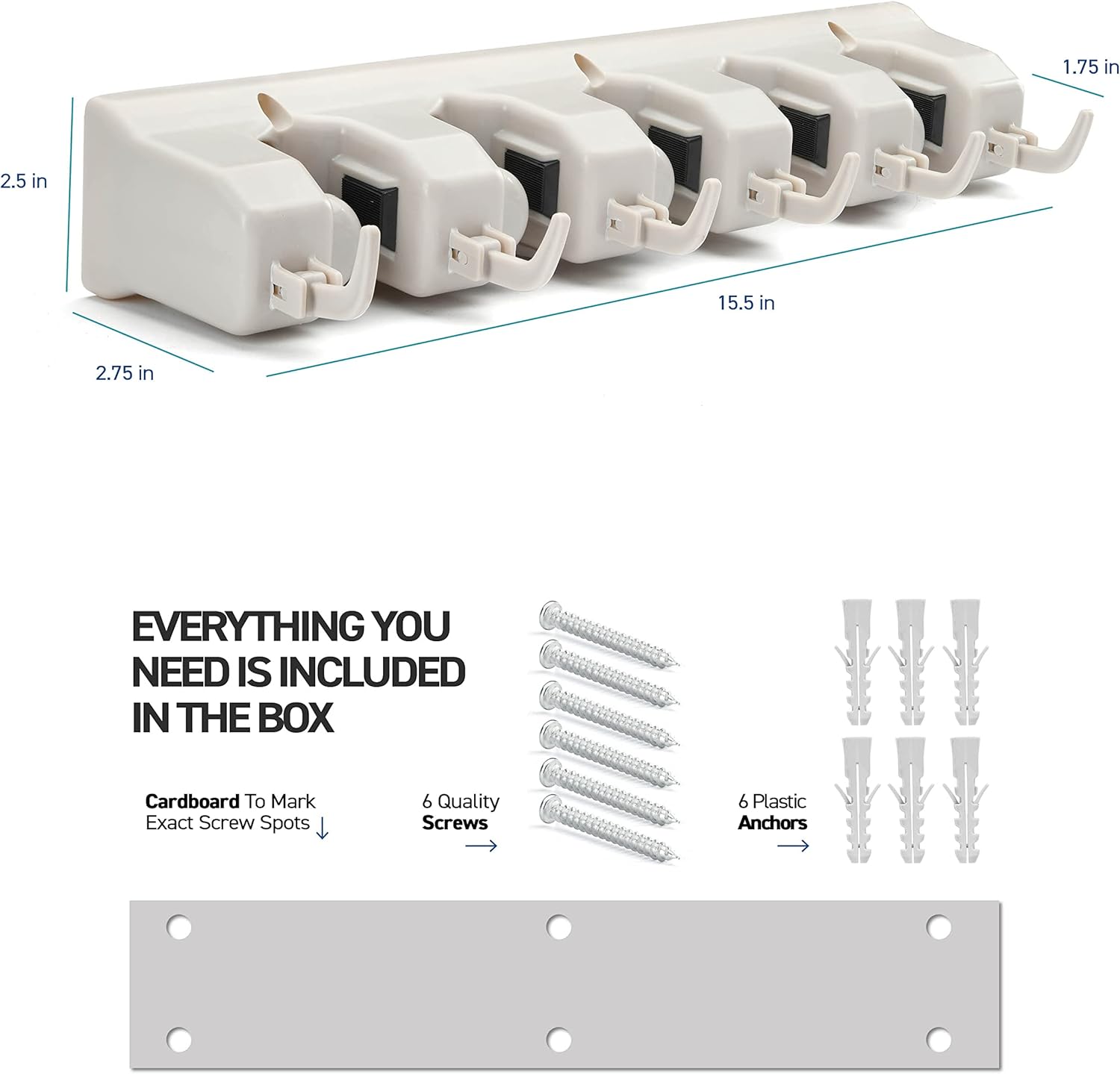 Easy To Mount Garage Storage Solutions – Included with the garage organizers are screws, anchors, a drilling template, and a guide–everything you’ll need to mount this mop hanger indoors or outdoors!