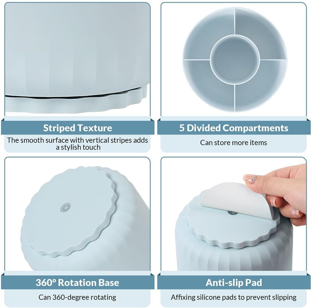 The 360° Degree Rotating Desktop Organizer offers a practical solution for your makeup brushes, eyeliners, lipsticks, and other beauty products.