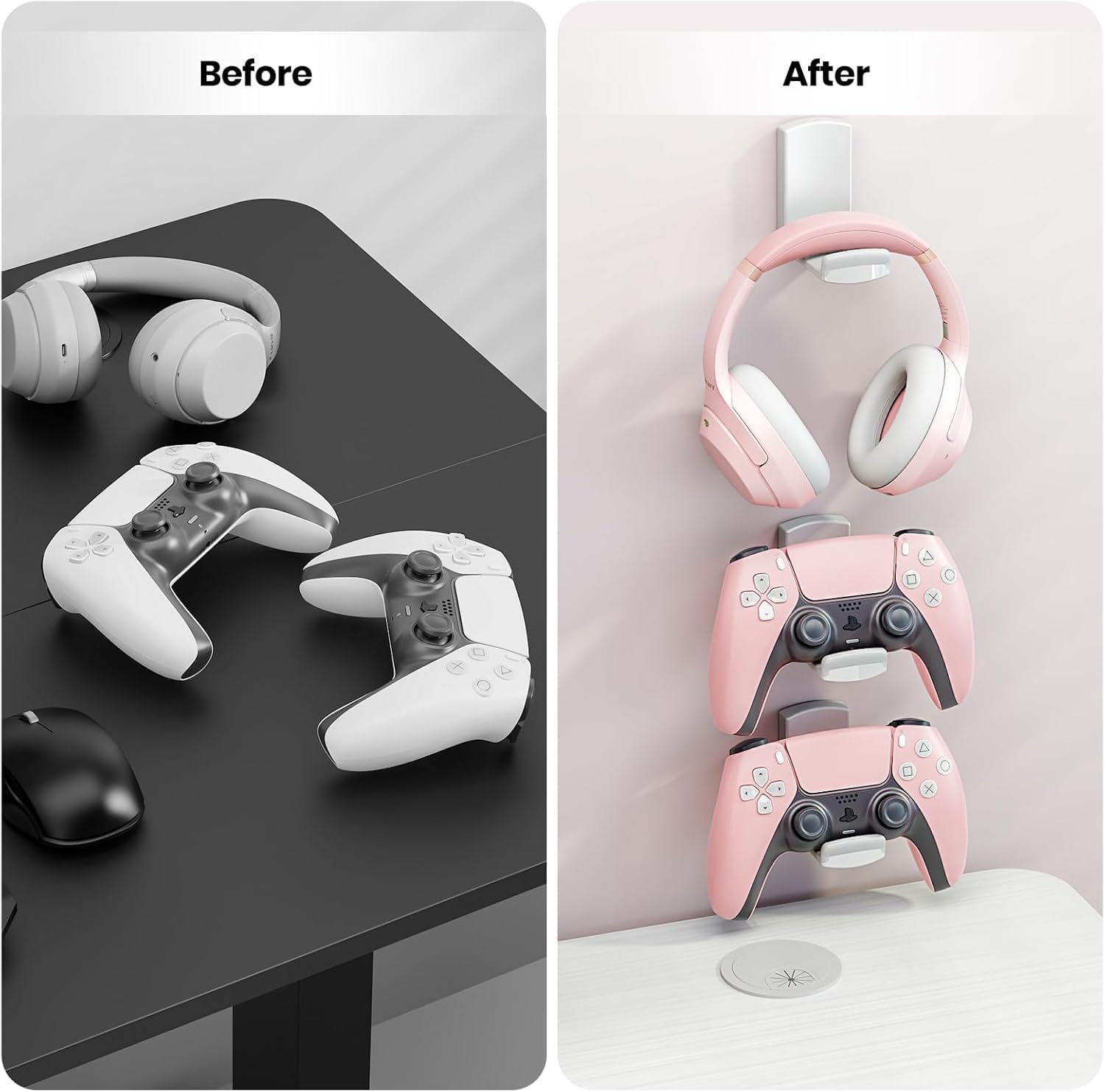 Upgraded Holder for Headphones & Controller – The W-Hold Series headphone stand is an upgraded model, designed to support a wider range of headphones and gaming controllers, compatible Sony, Bose, AirPods Max, PS5, and Nintendo Switch, ensuring your controllers and headphones are always within reach.