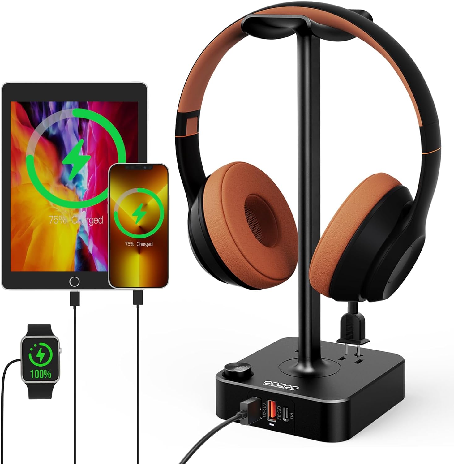 All in One Design: Universal headphone stand, 3 USB charging ports ( 20W x 1 USB C and 2 USB A 18W), 2 outlets Power Strip(1250W rated power) Great gift for Grandson,Son,Boy,Men,Husband and Boyfriend.