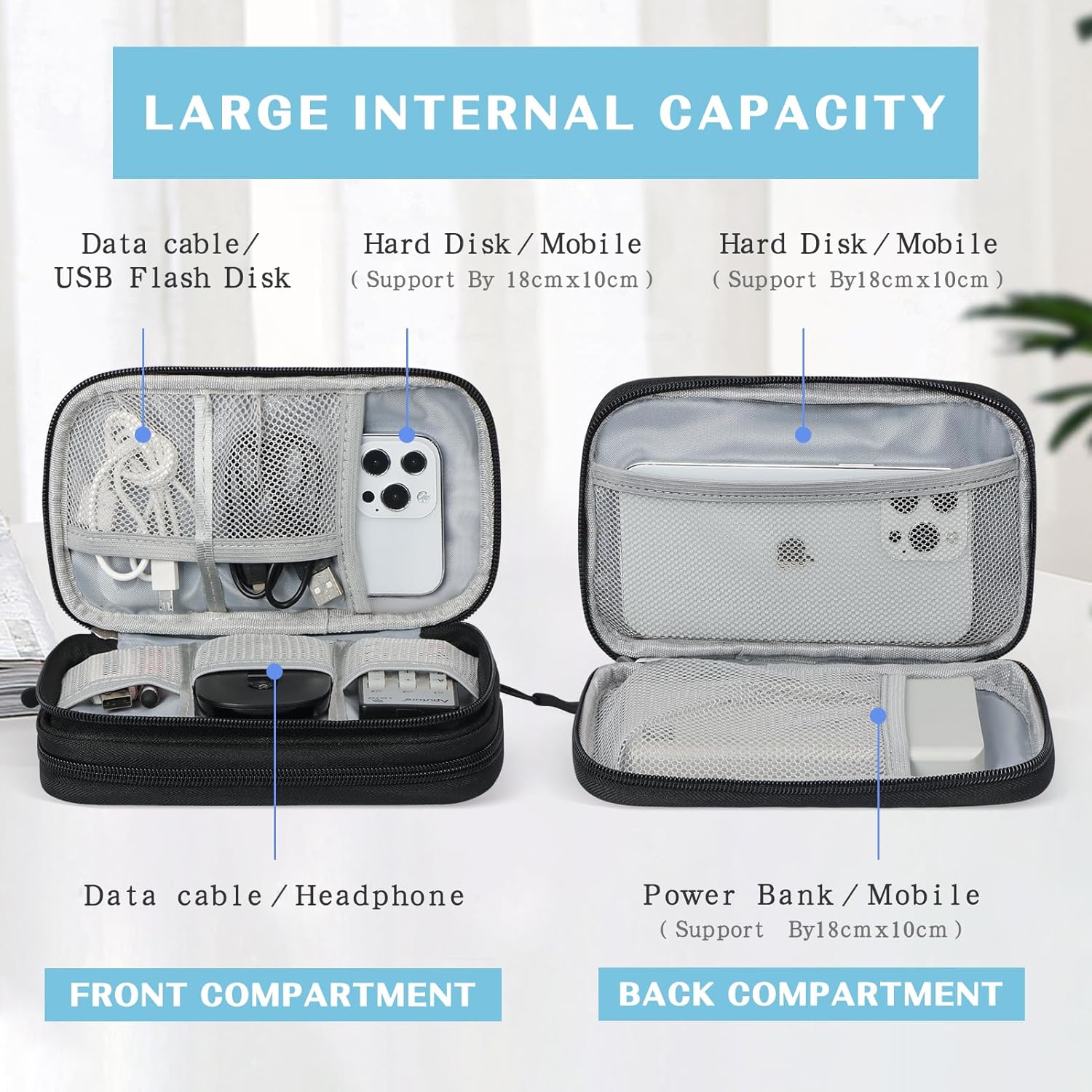 Double Layers Design: The electronics storage bag has 2 layers interior compartment with enough space to take in your cords, cables, USB drive, cellphone, charger, mouse, flash drive, and other accessories.