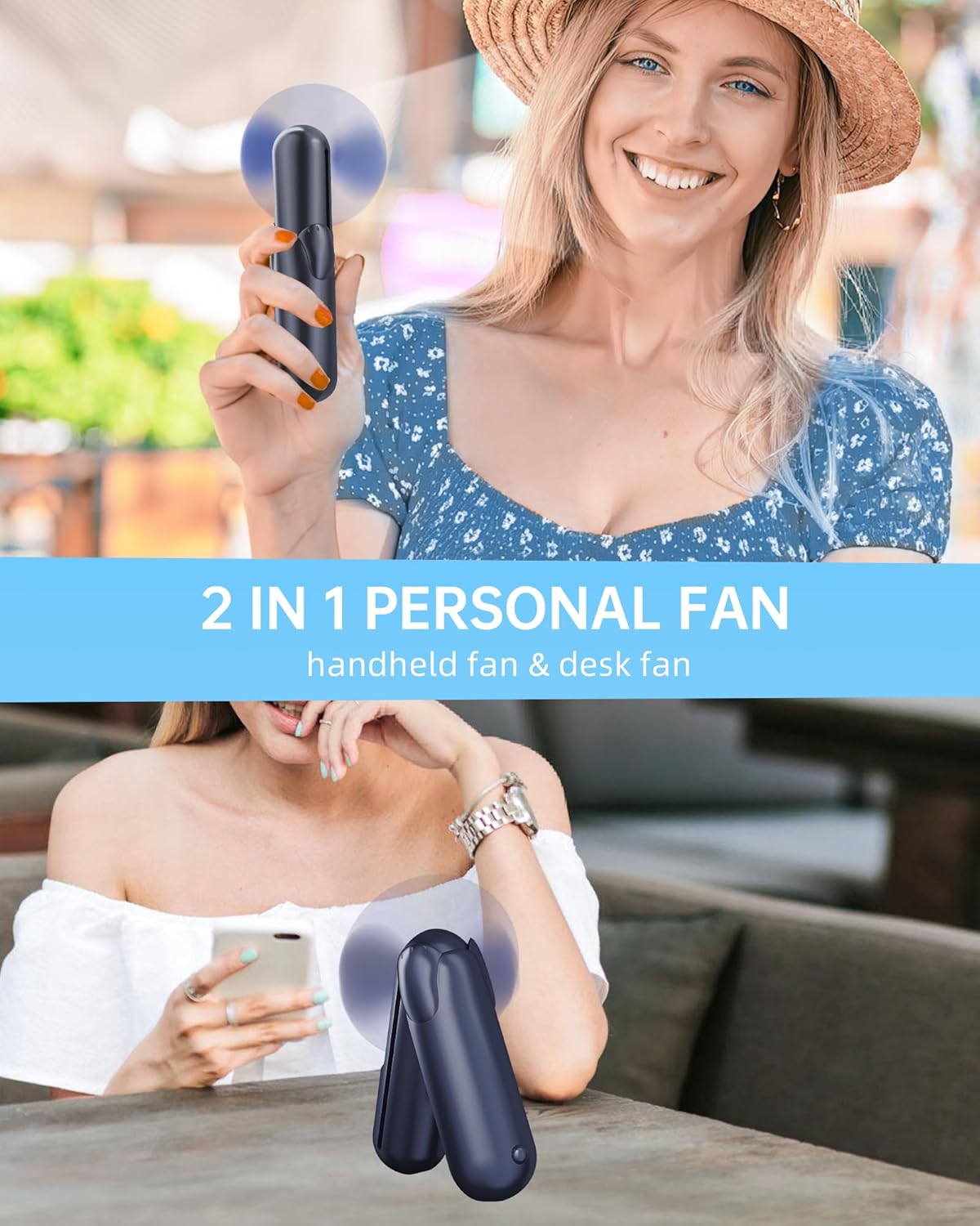 [2 in 1 Portable Fan] This mini fan is a versatile solution, serving as both a handheld fan and a desk fan. Whether you’re on the go and need portable coolness or working at your desk, it effortlessly adapts to meet your cooling needs.