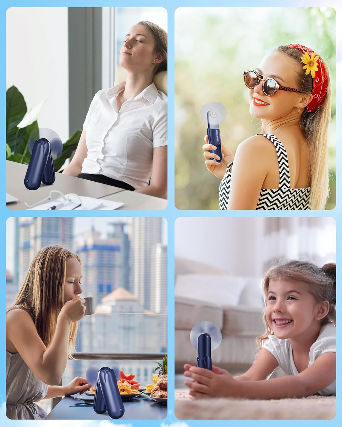 [Portable & Compact] The foldable handheld fan is incredibly easy to carry. Size: 1.7×1.6×4.7 inches, weight: 4.1 oz, slip it into your pocket or bag for a convenient cooling companion wherever you go.