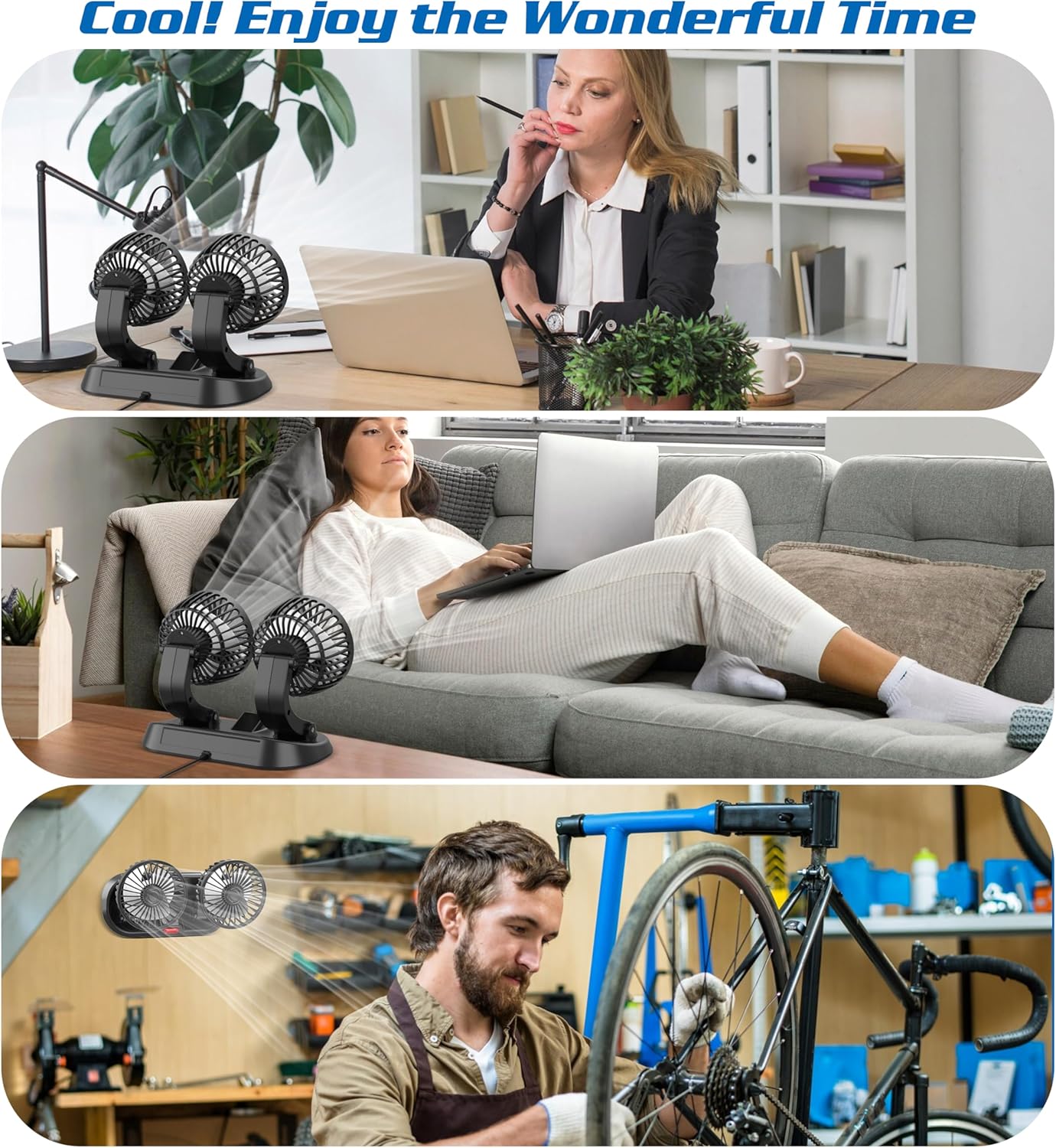 【Both Vehicle and Home Use Cool USB Fan 】- This usb fan with 2 heads fans with maximum speed of 3500 rpm and a maximum wind speed of 18ft/s to provide strong and stable airflow, the usb powered make it can be used in both car or desk fan, office and home use fan. Allowing you enjoy a comfortable driving and riding experience even in the hot summer.