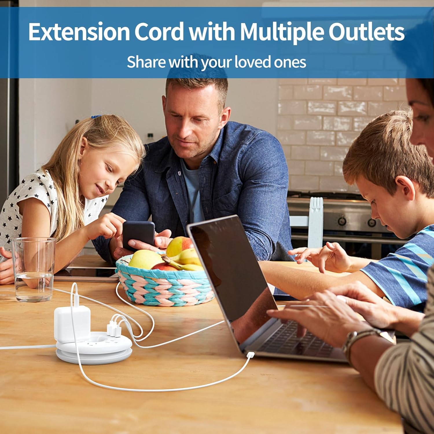 [3ft SHORT EXTENSION CORD]: Short power cord wrapping around which makes it easy to storage; compact & small enough to throw in your suitcase for travel. Bring a great length extension cord if needed