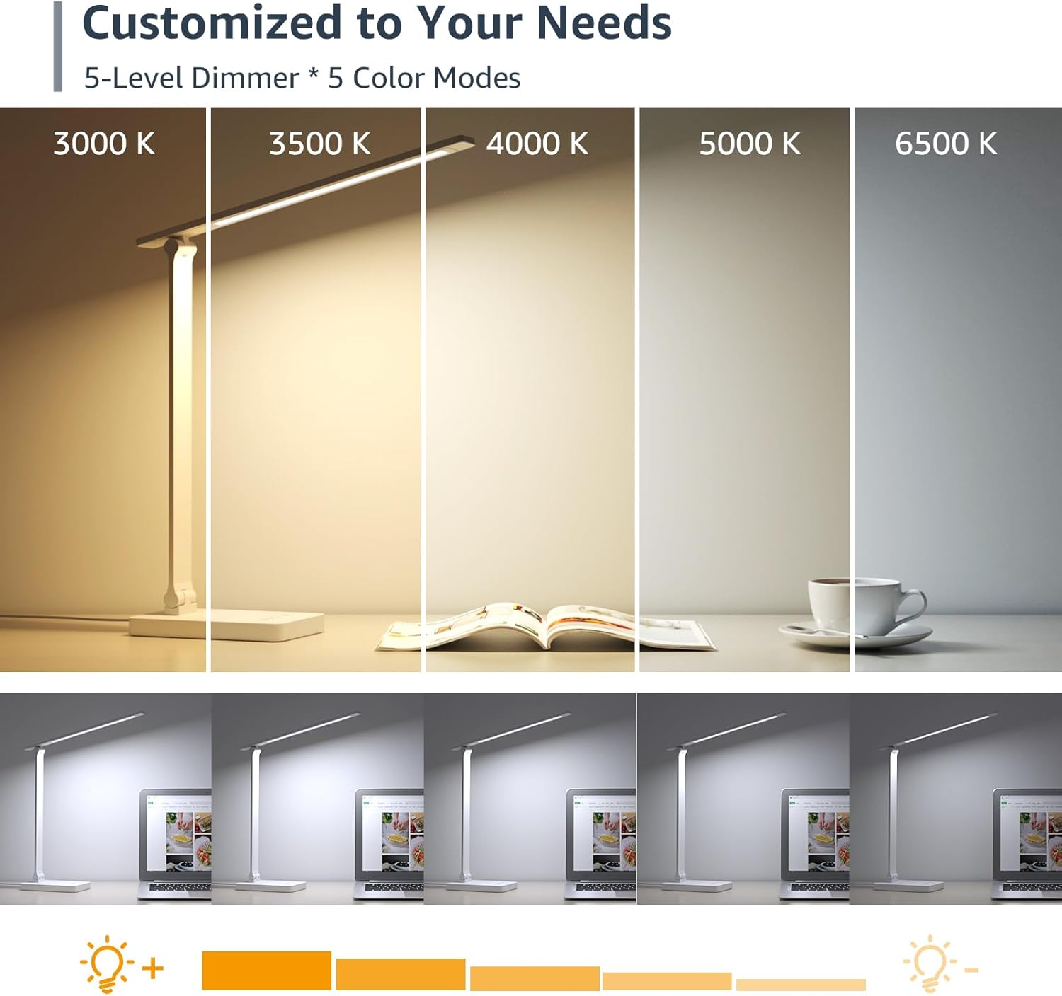 [Multiple Lighting Choices] – This LED desktop lamp offers 5 lighting modes, each of which can be paired with one of 5 brightness levels, making it suitable for various needs, from bright white light for home office work to soft warm light for bedside reading.