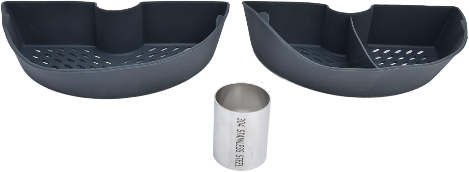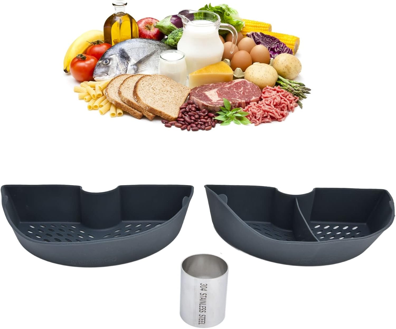 Feature:1. [More Cooking Space] Cooking room divider, you can cook a variety of different dishes and food at the same time to meet various cooking needs.2. [Non Stick Treatment] Non stick treatment on the can prevent food from burning or sticking to the silicone, and it can be rinsed and cleaned very easily.3. [Optimal Circulation] There are vents at the bottom, so that the steam channel will not be damaged or blocked, which is convenient for rapid heating.4. [ Material] Using food grade silicone+304 stainless steel material, the size is stable, allowing convenient and removal of cooked food.5. [Elaborate Design] The center of the cooking chamber divider is a recess that serves as a chimney, and the upper part of the steamer is also optimally cooked.Specification:Item Type: Cooking Chamber DividerMaterial: Silicone + 304 Stainless SteelWeight: Approx. 300g / 10.6ozProduct Size: Approx. 26x22x5cm / 10.2×8.7×2.0inApplicable Model: For Vorwerk TM5 TM6 TM31 Package List:1 x Single Grid Part1 x Double Grid Part1 x Stainless Steel AccessoryNote:1. Please allow 1‑2in error due to manual measurement. Thanks for your understanding.2. Monitors are not calibrated same, item color displayed in photos may be showing slightly different from the real object. Please take the real one as standard.
