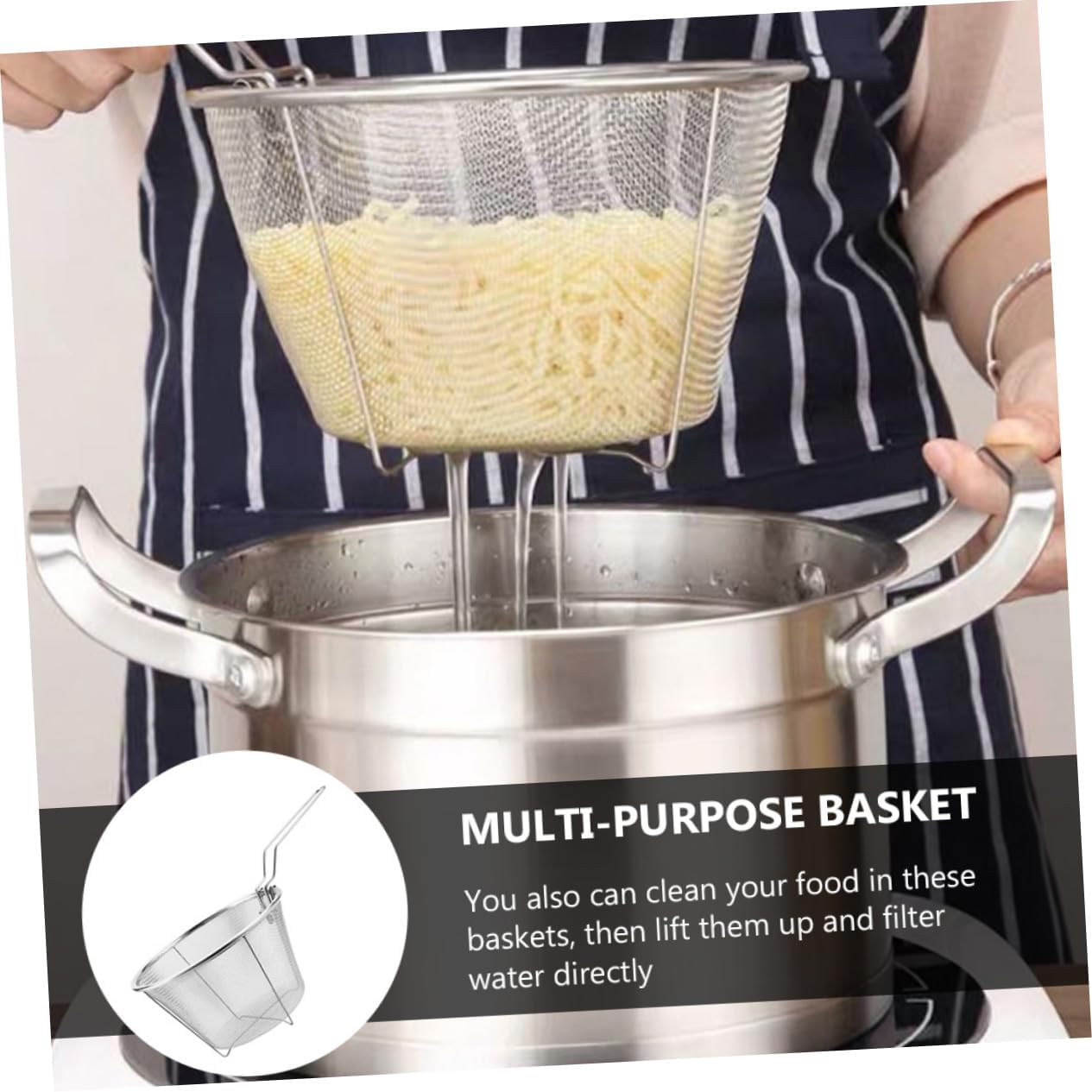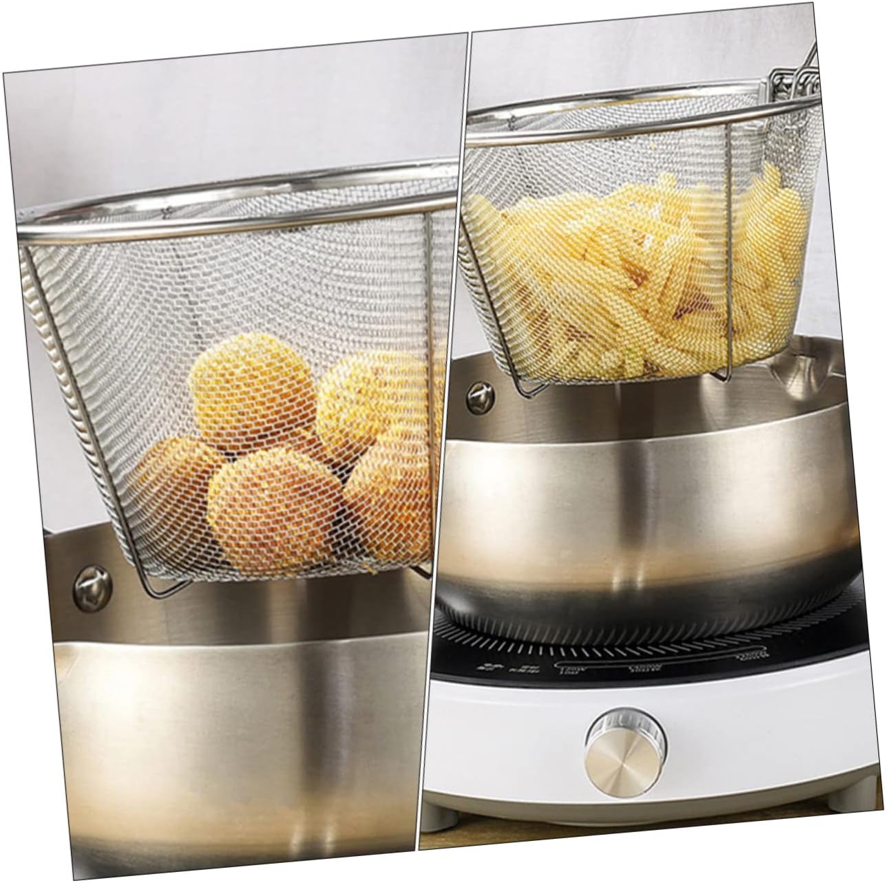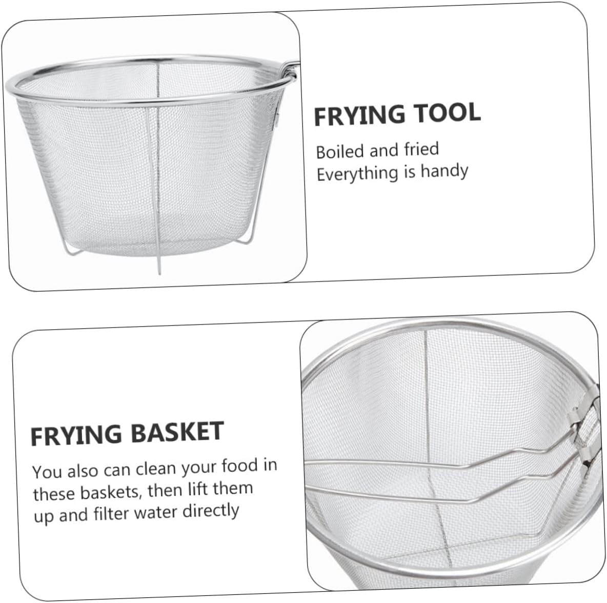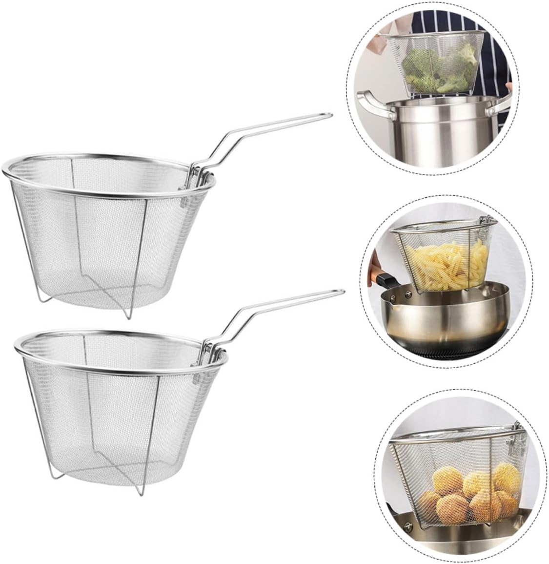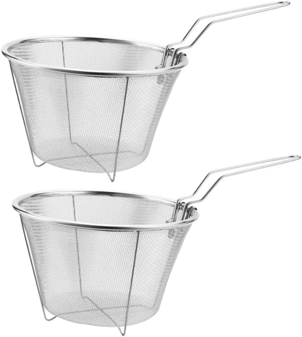 KICHOUSE 2pcs Stainless Steel Frying Baskets Heat-resistant Drain Colander for French Fries Fried Foods Kitchen Gadgets for Home Restaurant Use