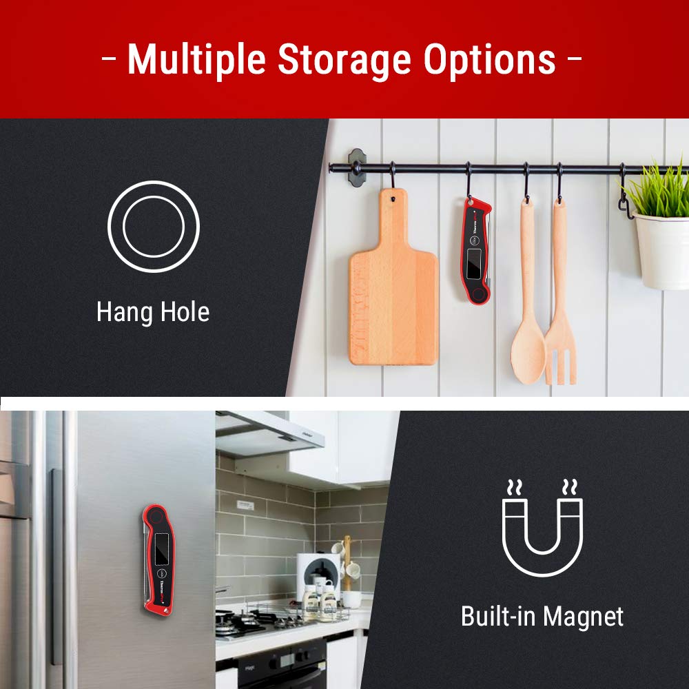 Ultra-fast and Highly Accurate: Instant read meat thermometer features a precise thermocouple sensor get speedy readings within 2-3 seconds, accurate to ±0.9 degree Fahrenheit (±0.5 degree Celsius); No more leaning over a hot grill, just seconds make all the difference between perfectly cooked instead of overcooked