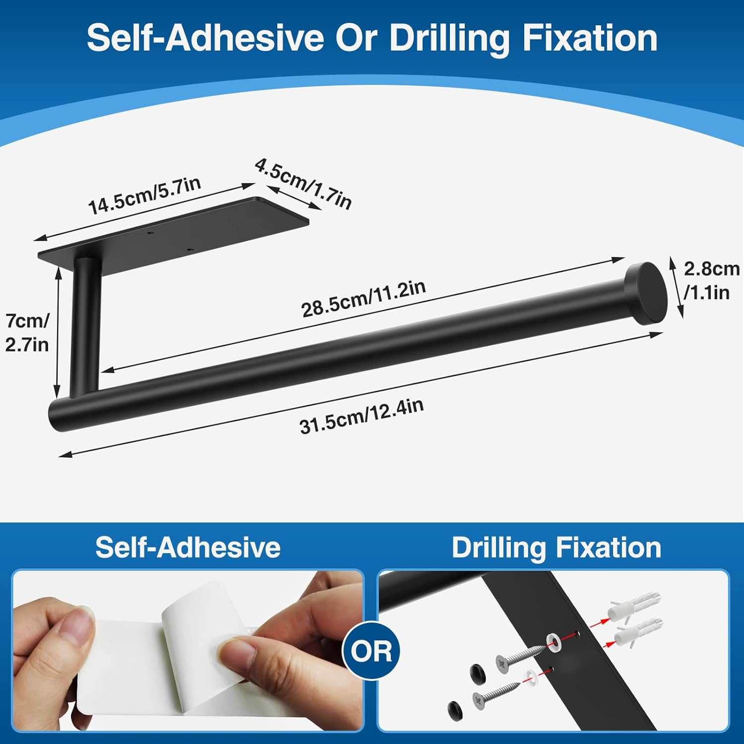Easy Installation: There are two ways to install this paper towel holder, self-adhesive or drilled, you can freely choose the appropriate installation method according to your wall or cabinet situation.