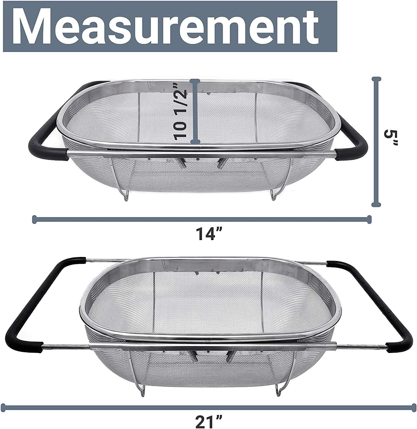 Expandable Handy Kitchen Tool – We specifically refined this oval drying sleeve to supply expandable support in your cooking adventures. Our large over the sink design, stainless steel body and exquisite rubber grips is sure to boost your cooking efficiency. It expend from 14 inch to 19 inch.