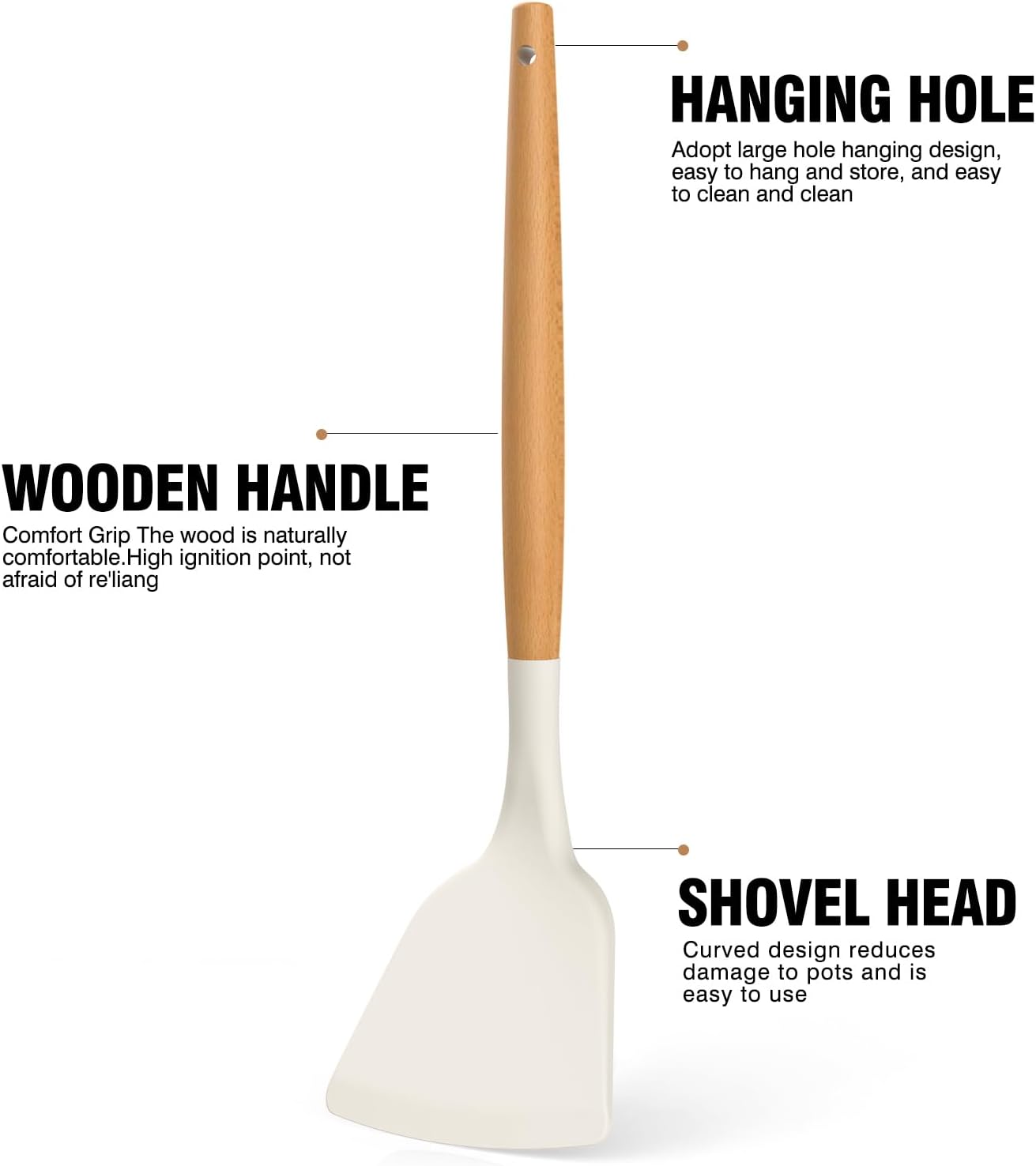 NON-DEFORMABLE, EASY TO CLEAN: We’ve designed these silicone kitchen utensils sets with stainless steel cores wrapped in silicone for shape retention and flexibility. No warping or cracking, no hassle. The silicone utensils for coking one- piece construction ensures no pesky gaps where food can hide, making cleaning a breeze. Due to the unique nature of wooden handles, we recommend handwashing