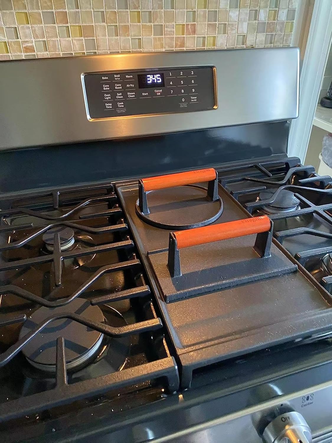 Customers find this griddle plate to be a game changer for making smash burgers, working well with cast iron pans and fitting perfectly in Lodge 10″ pans. Customers praise its solid heavy metal construction, perfect weight for griddle use, and quick cooking time. They appreciate its ease of cleaning and consider it good value for money.