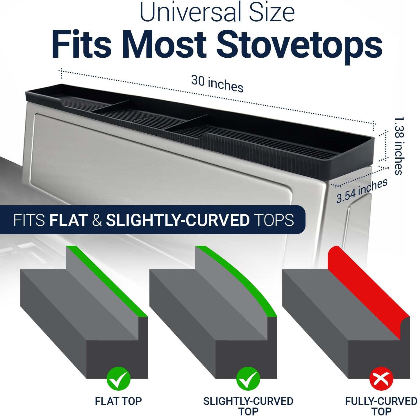 WHAT SETS US APART: Unlike flimsy, low-quality options, our above stove shelf is crafted from premium, sturdy silicone that stays firmly in place. With elevated ridged sides to prevent items from falling and a non-slip texture design to keep everything secure, your kitchen essentials stay safe during cooking. Subtle ridges create three sections for better organization and flexible storage. Experience unmatched quality and functionality to keep your kitchen tidy and safe