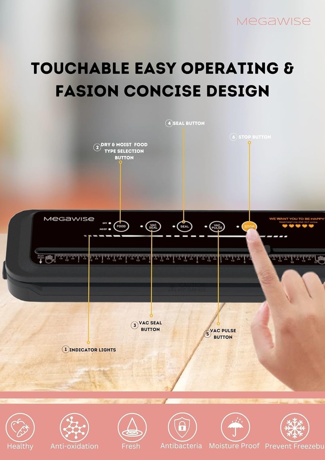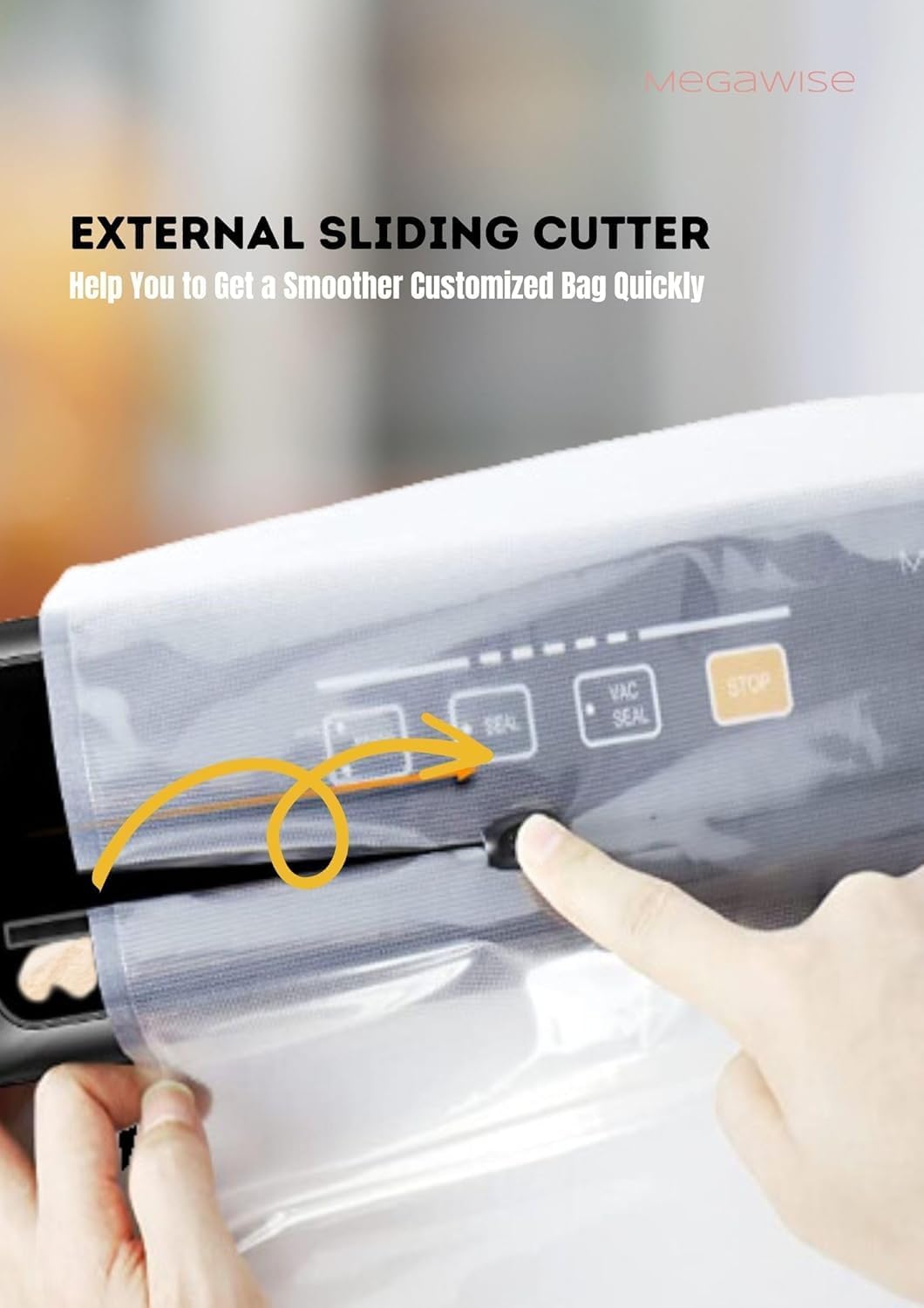Mega Powerđź’• Save Your Energy: Effortlessly preserve your food! With its 80kPa powerful suction and high-grade heating wire, our MegaWise vacuum food sealer delivers an optimum vacuum seal in just 10-20 seconds. Keep your food fresh up to 5 times longer, and avoid wasting meals by throwing them in the trash due to ice crystal buildup in the fridge.