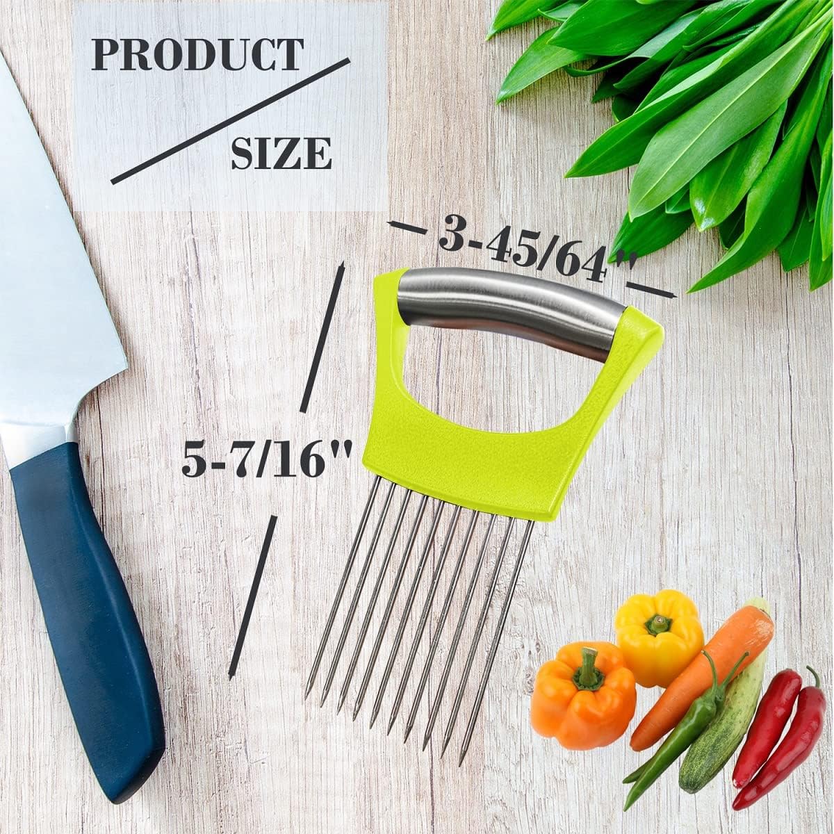 Enhanced Safety: The onion holder for slicing keeps your hands at a safe distance from sharp knives, ensuring a secure grip on the food item you’re slicing. Say goodbye to accidental cuts and hello to worry-free slicing!