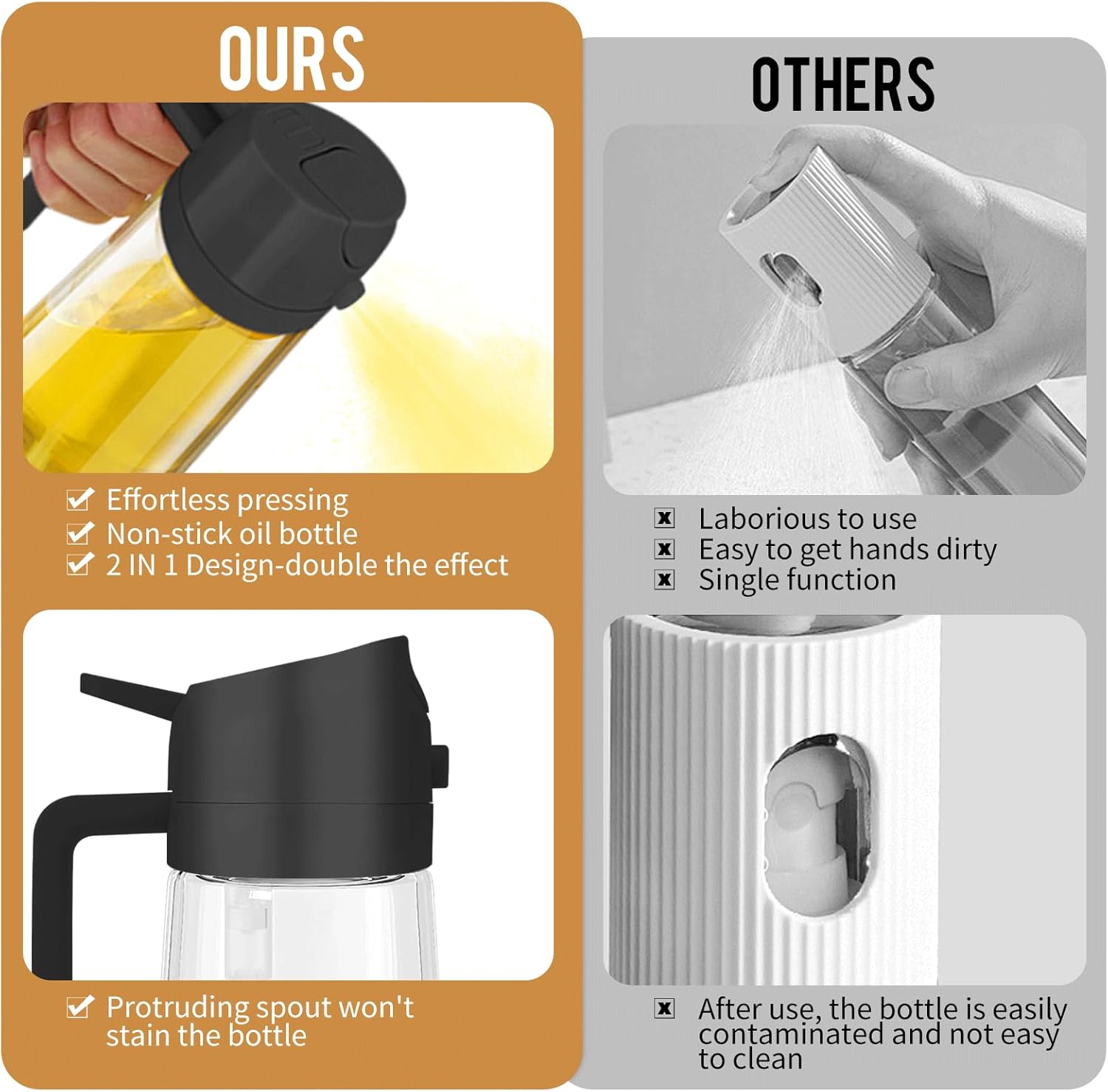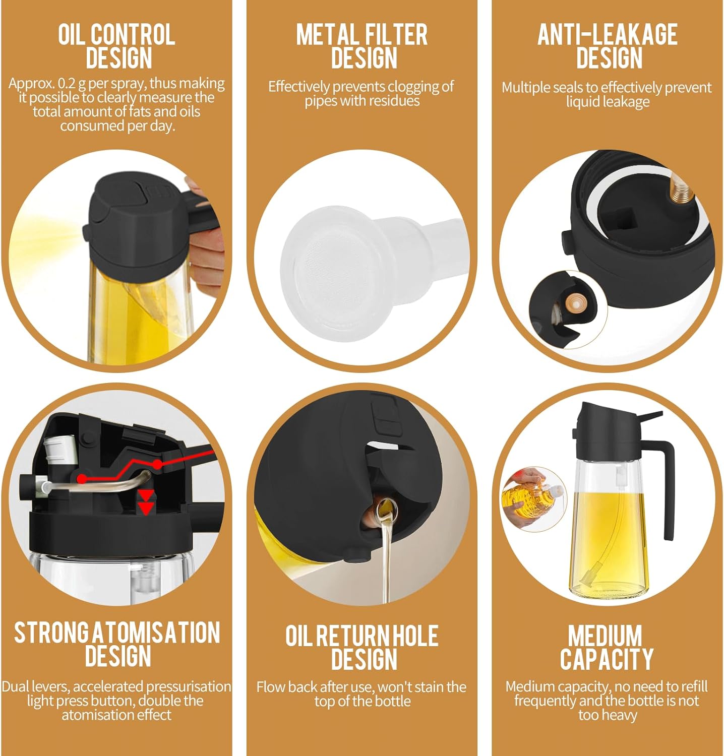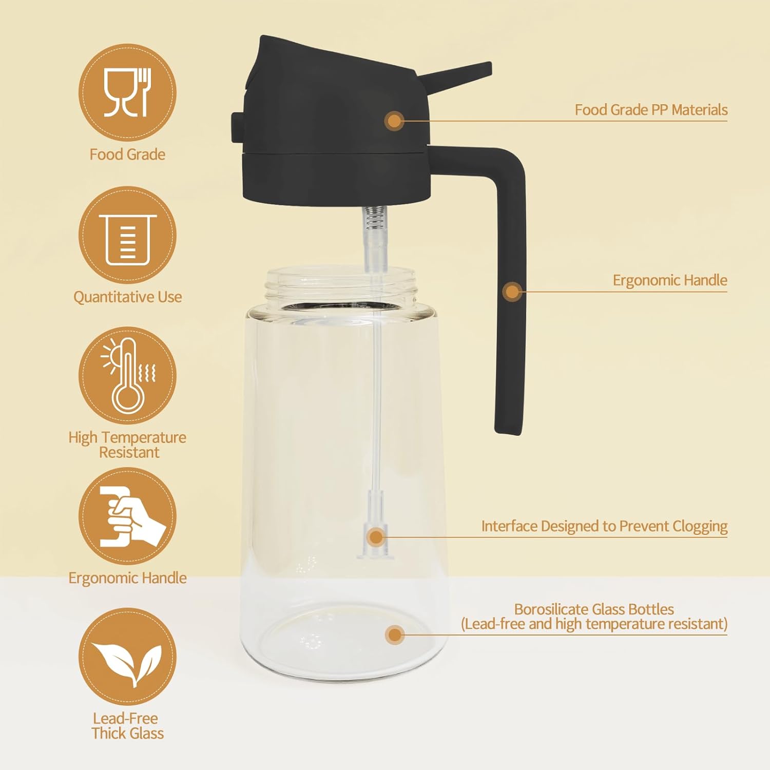 Glass Oil Dispenser/Pour & Sprayr Bottle for Air Fryer, Salad, BBQ