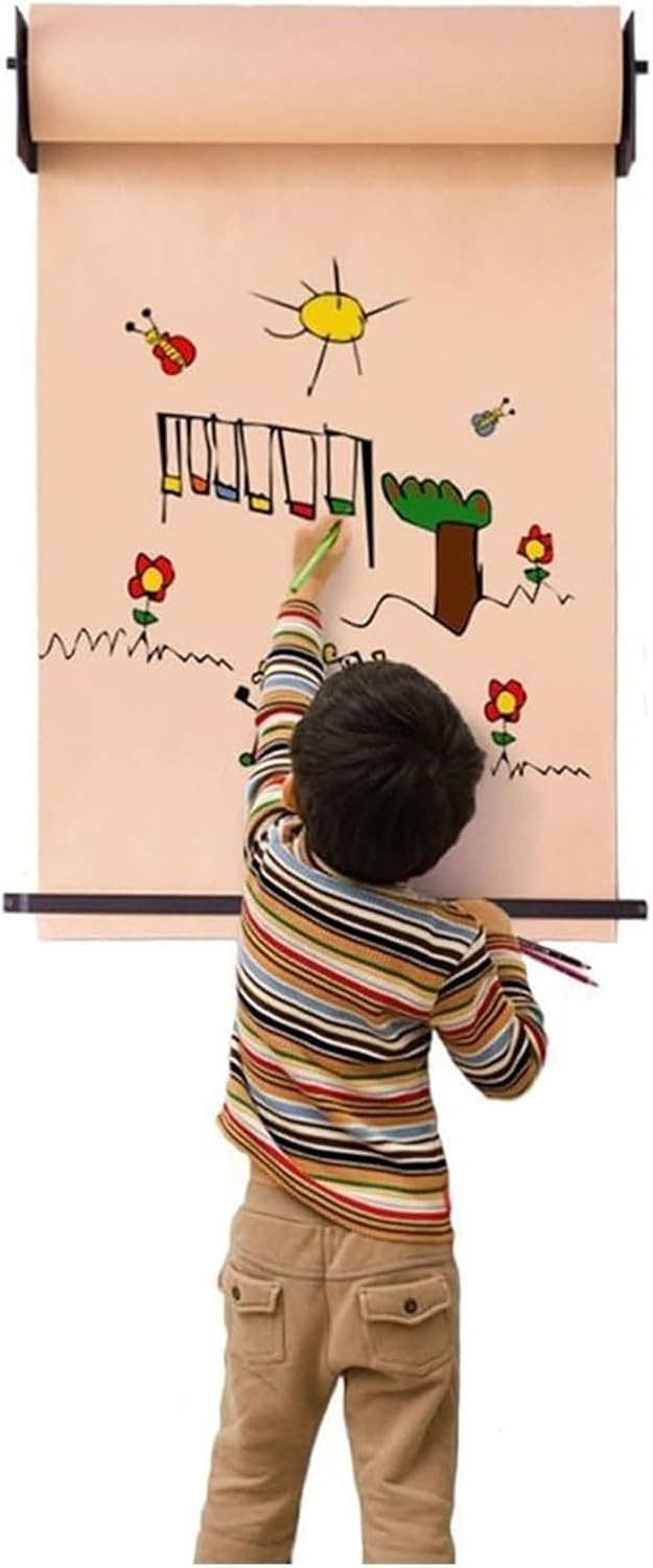 Wall Mounted Easel: The dispenser is space-saving, with a wall-mounted format that secures the kraft paper rolls to the wall, allowing for easy storage of the rolls to be used.