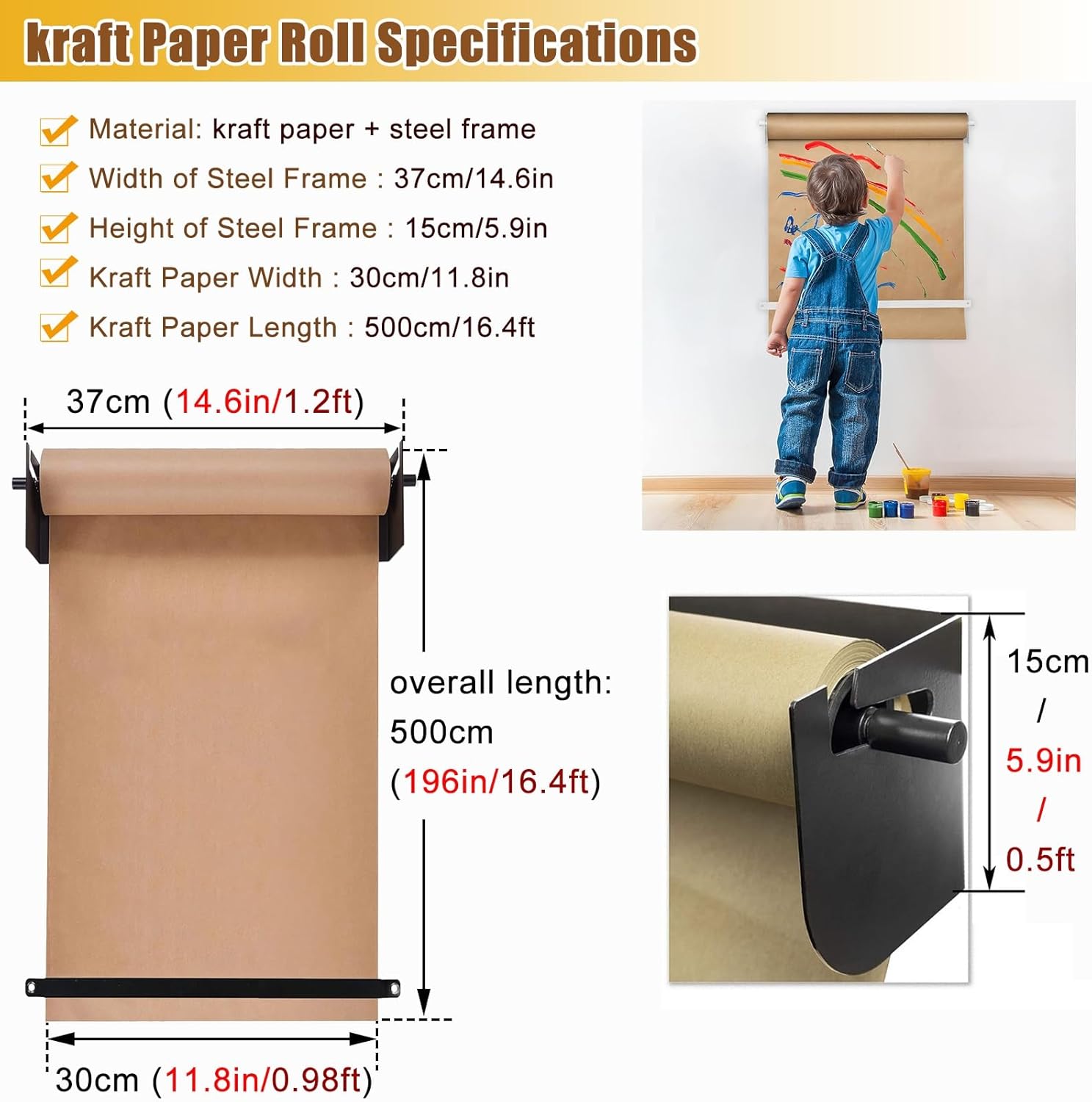Steel Frame Wide : 37cm(14.6in/1.2ft) + Kraft Paper Width : 30cm(11.8in/1ft)